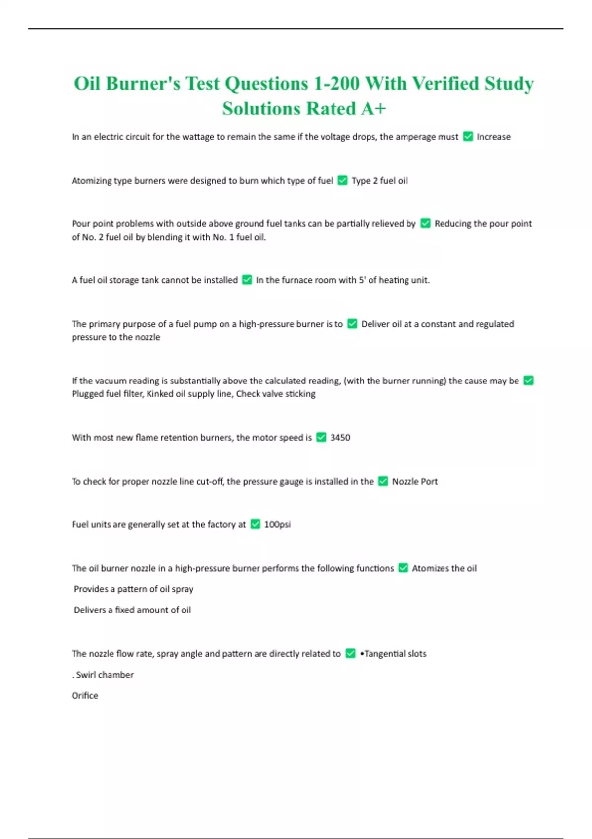 Oil Burner's Test Questions 1-200 With Verified Study Solutions Rated A+ Oil Burner's Test Questions 1-200 With Verified Study Solutions Rated A+