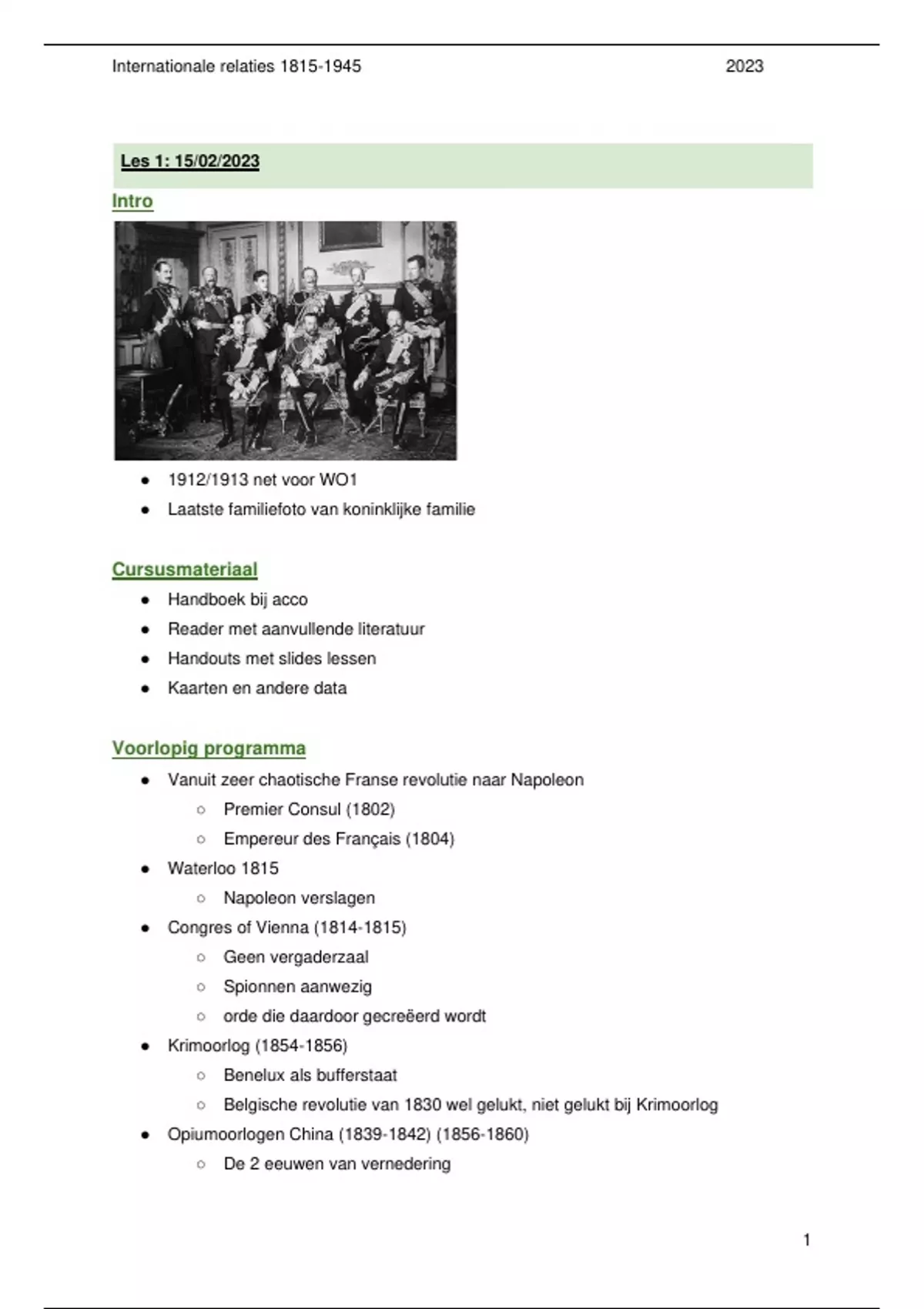 ,Internationale relaties 1815-1945 2023