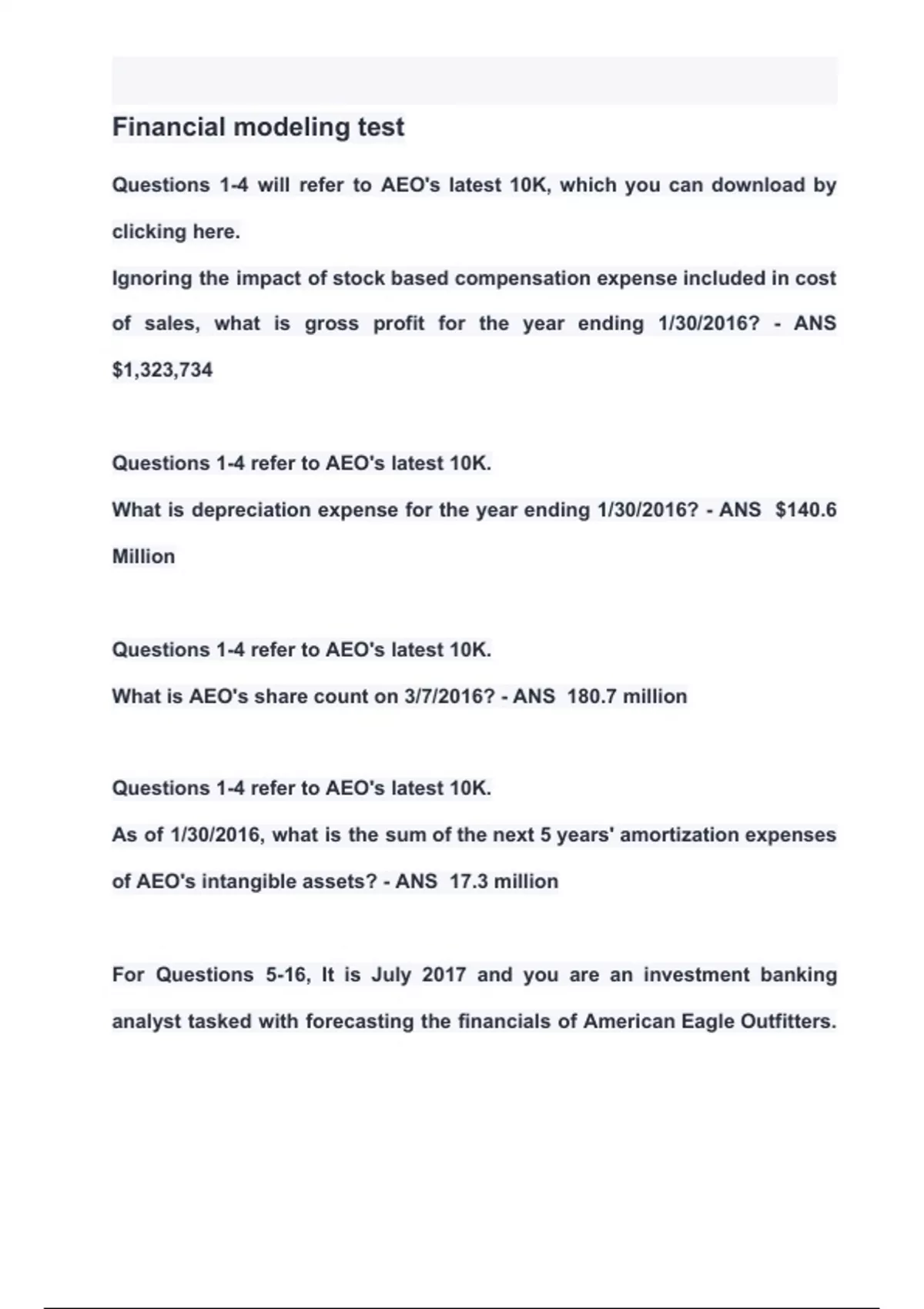 Financial modeling test questions & answers 2024 ( A + GRADED 100% VERIFIED)