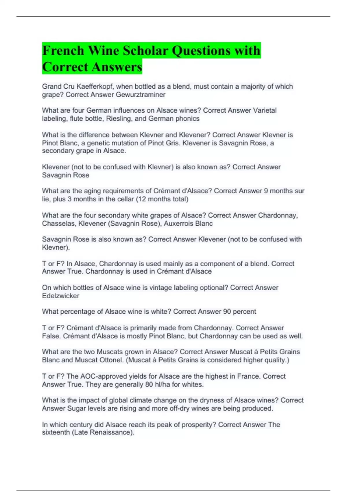 French Wine Scholar Questions with Correct Answers