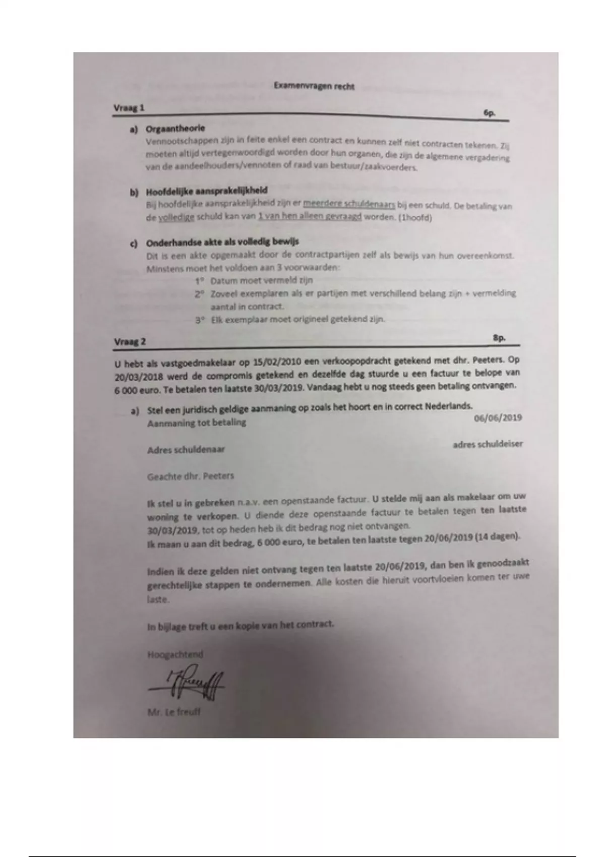 Examenvragen juridische Context van de Vastgoedmarkt + uitgebreide oplossing van de examenvragen. Veel terugkerende examenvragen van vorige examens van Lockefeer.
