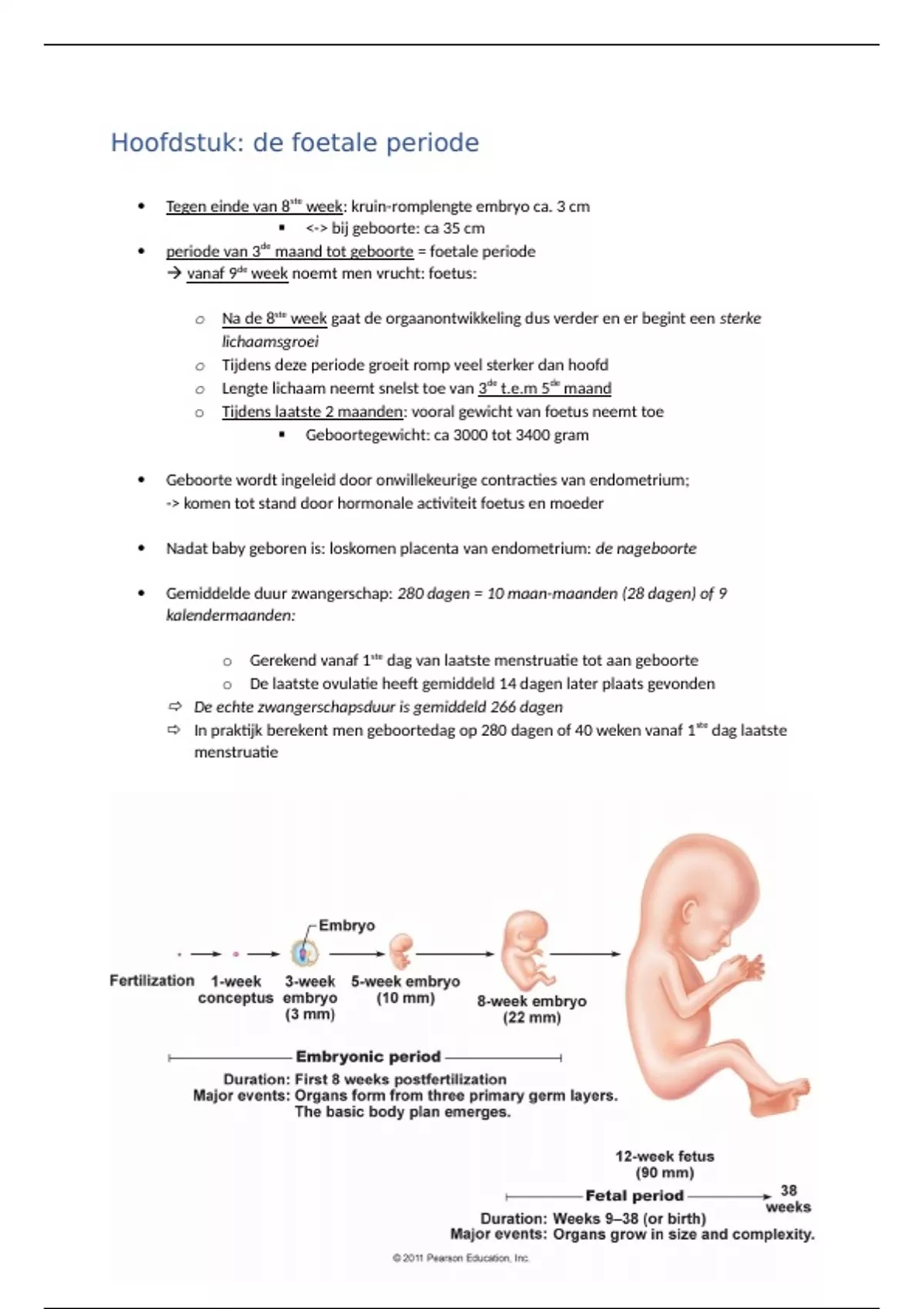 Tegen einde van 8ste week: kruin-romplengte embryo ca. 3 cm