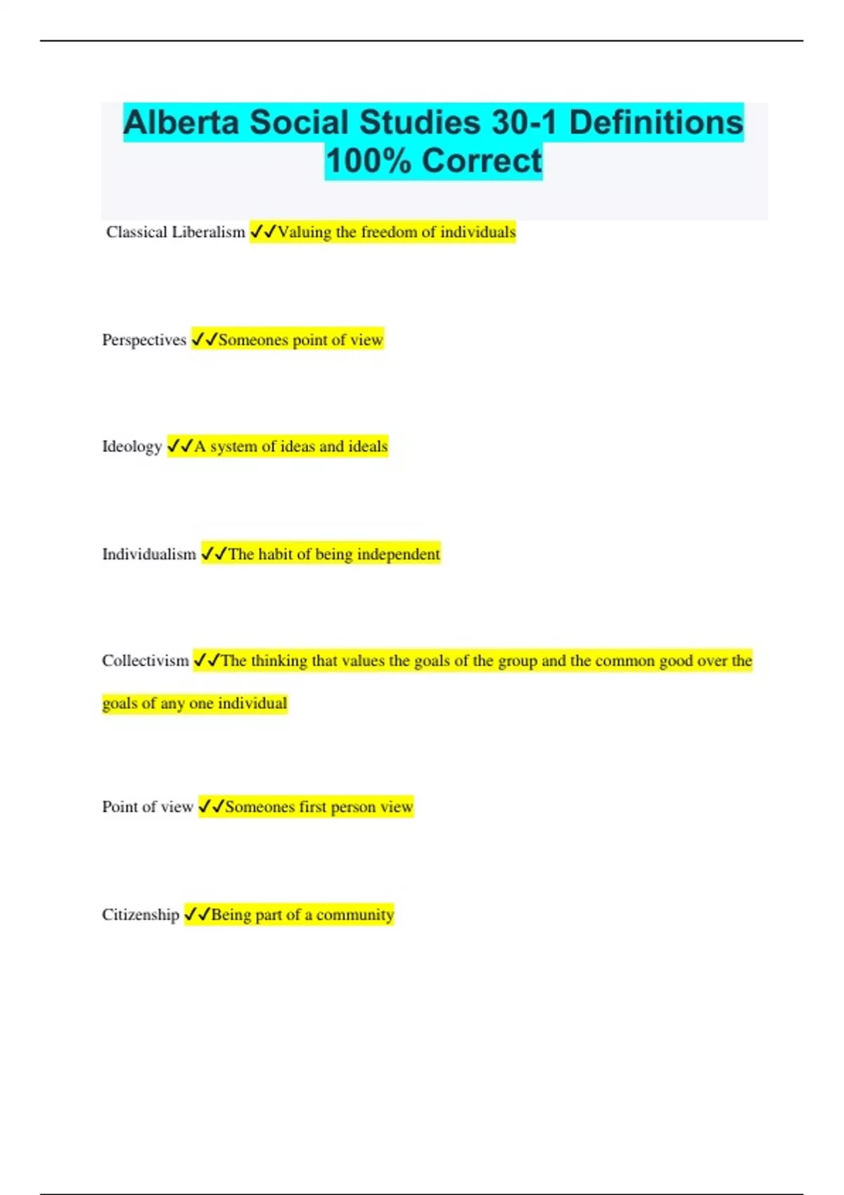 - Alberta Social Studies 30-1 Definitions 100% Corre
