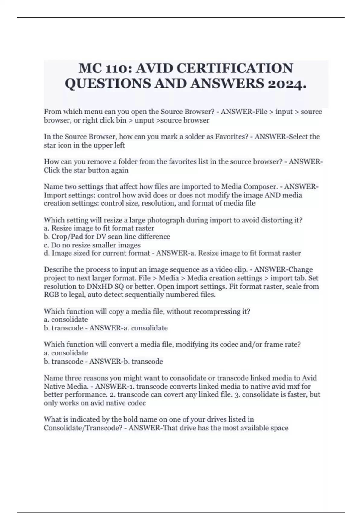 MC 110: AVID CERTIFICATION QUESTIONS AND ANSWERS 2024.