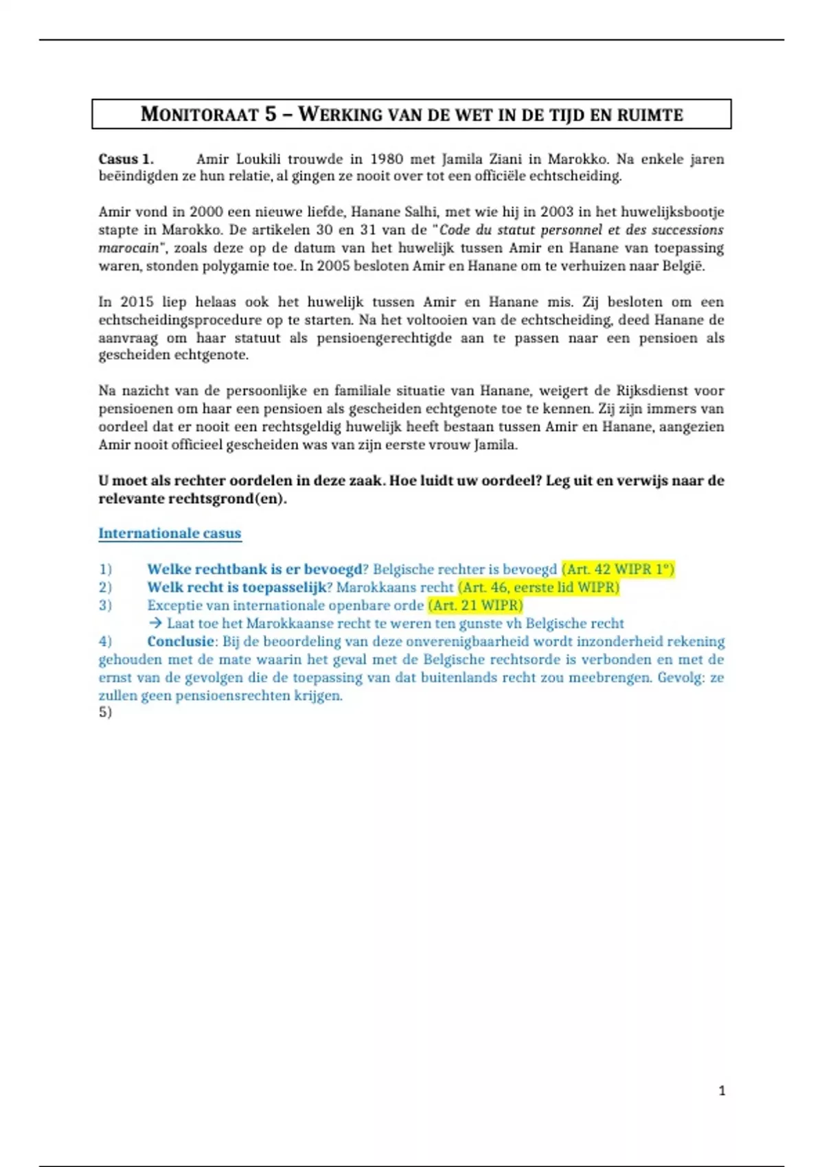 Casus 1. Amir Loukili trouwde in 1980 met Jamila Ziani in Marokko. Na enkele jaren