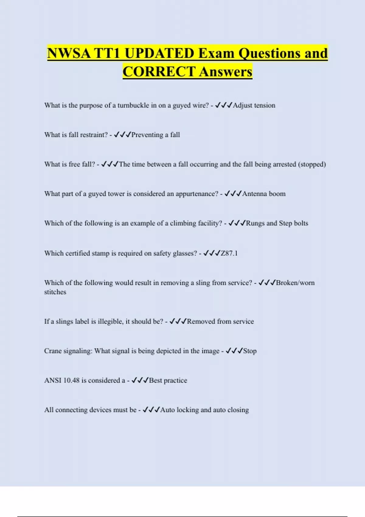 NWSA TT1 UPDATED Exam Questions and CORRECT Answers