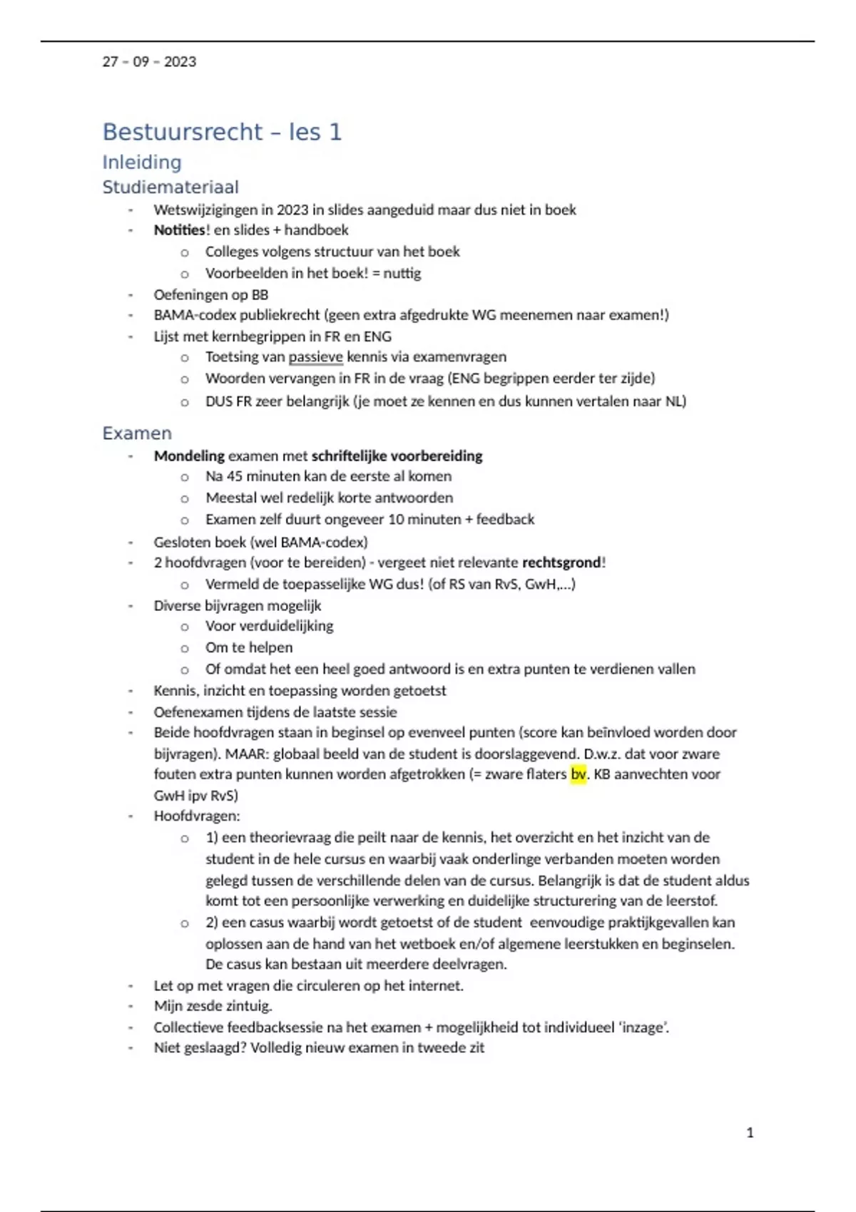 - BAMA-codex publiekrecht (geen extra afgedrukte WG meenemen naar examen!)