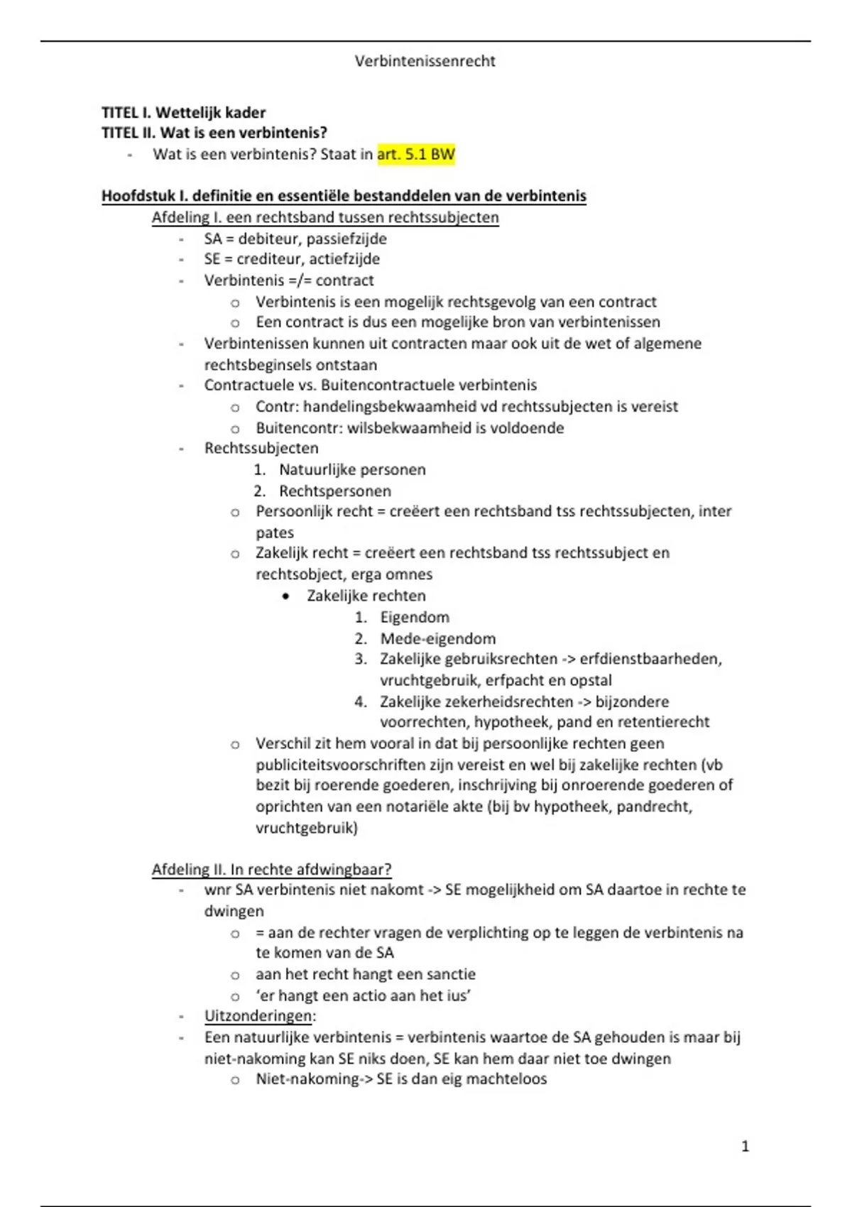 - Wat is een verbintenis? Staat in art. 5.1 BW
