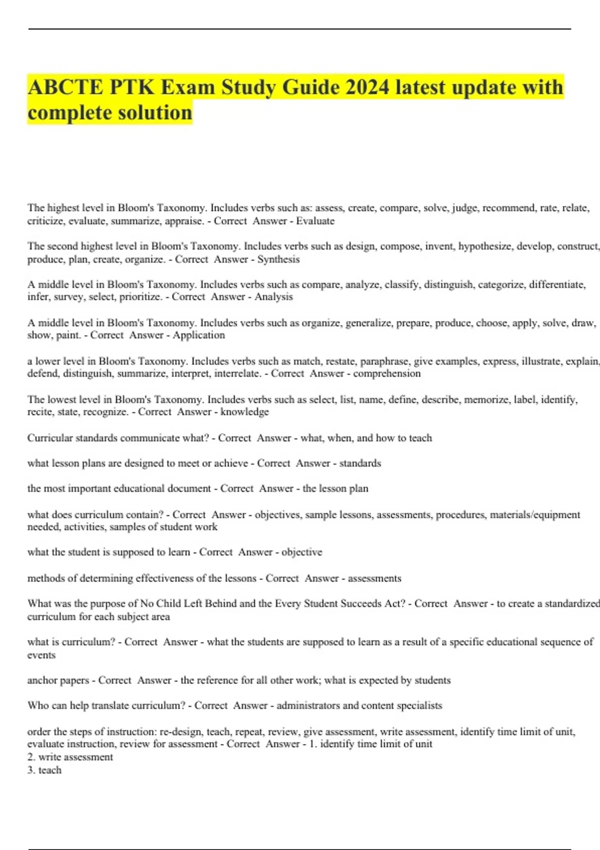 ABCTE PTK Exam Study Guide 2024 latest update with complete solution