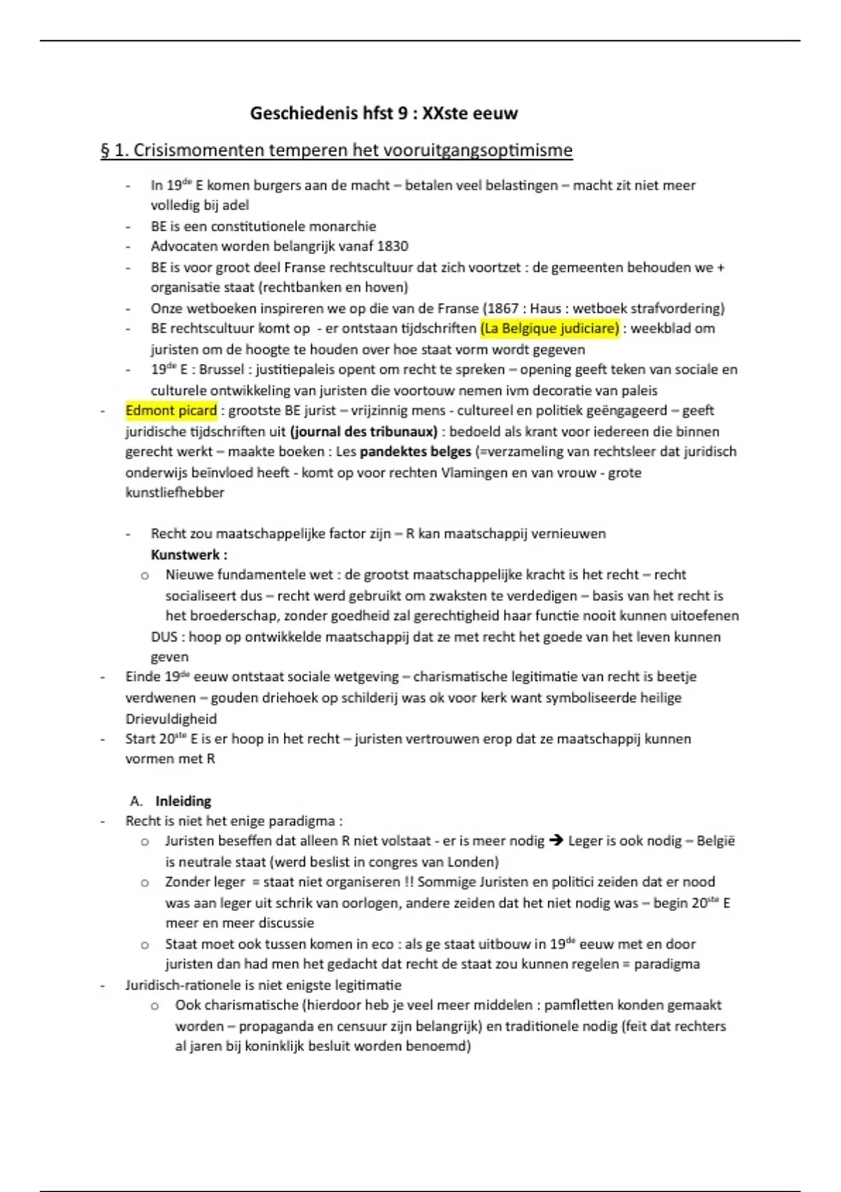 Samenvatting hoofdstuk 9 - 20ste eeuw