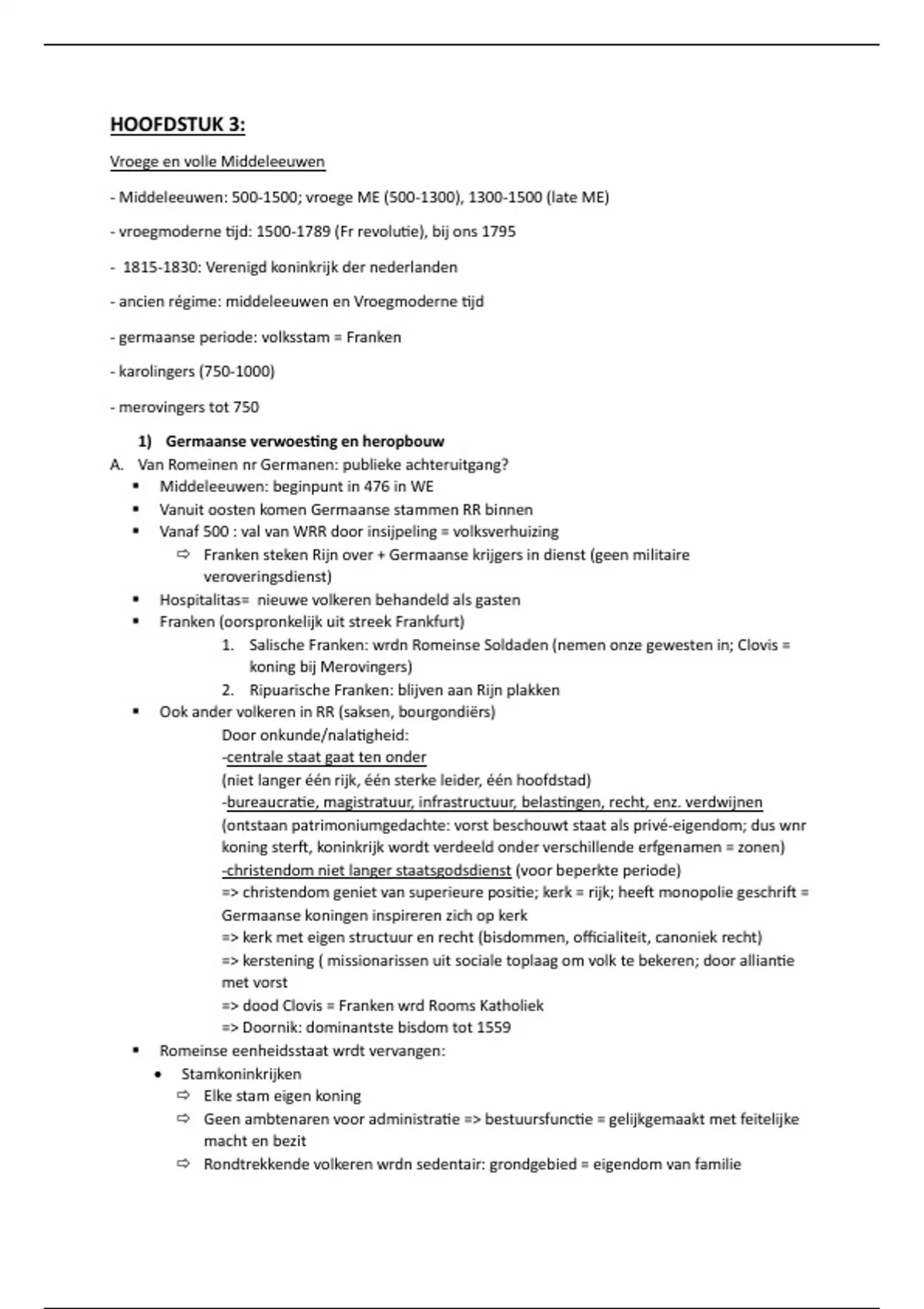 Samenvatting Hoofdstuk 3 - vroege en volle middeleeuwen