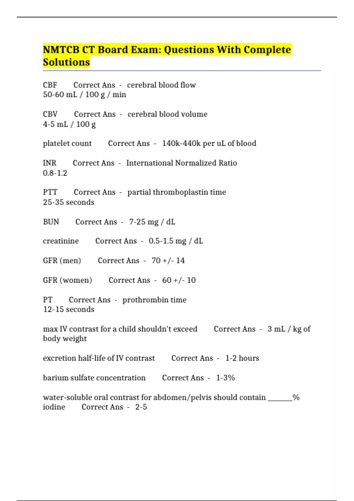 NMTCB CT Board Exam: Questions With Complete Solutions