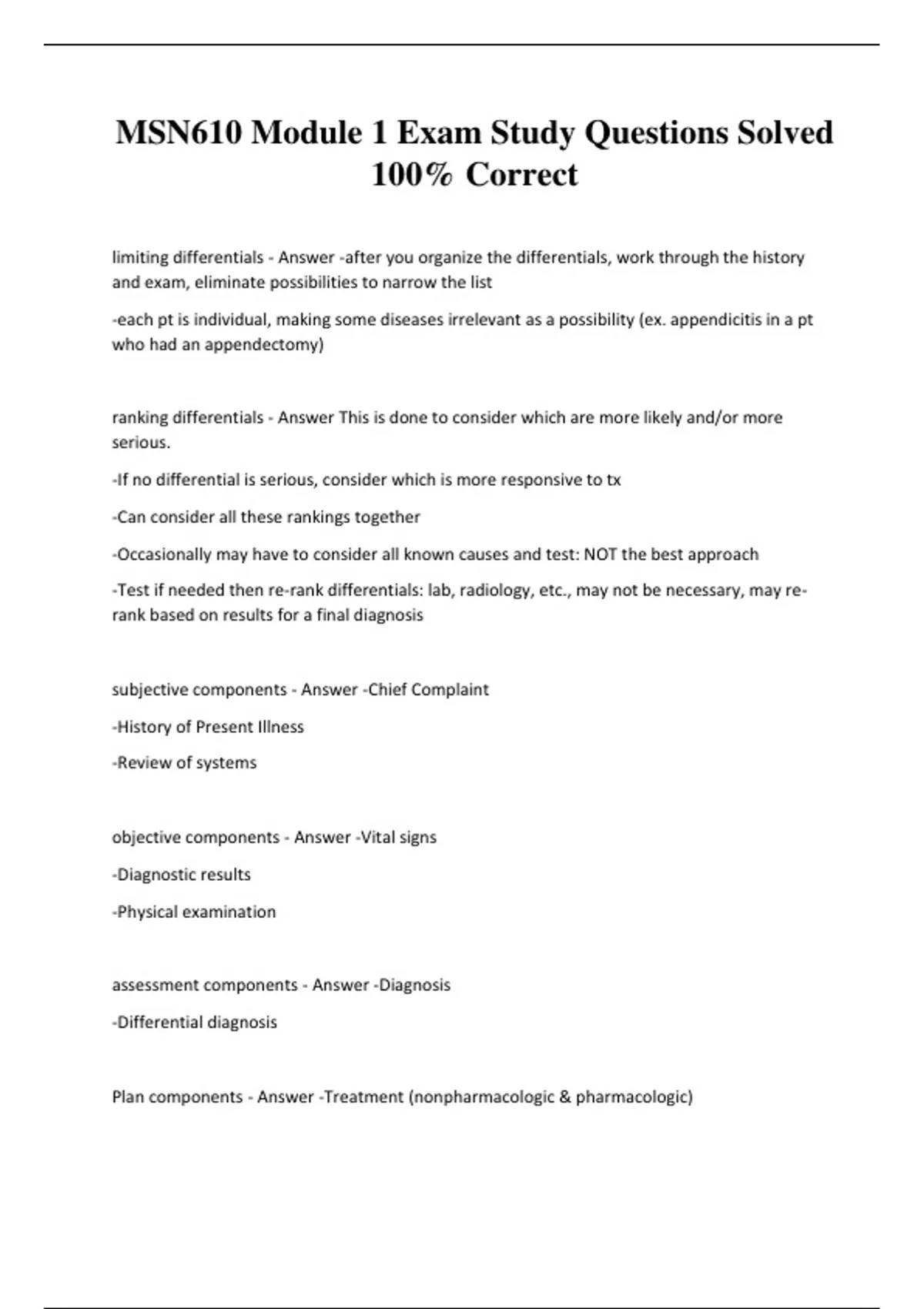 MSN610 Module 1 Exam Study Questions Solved 100% Correct
