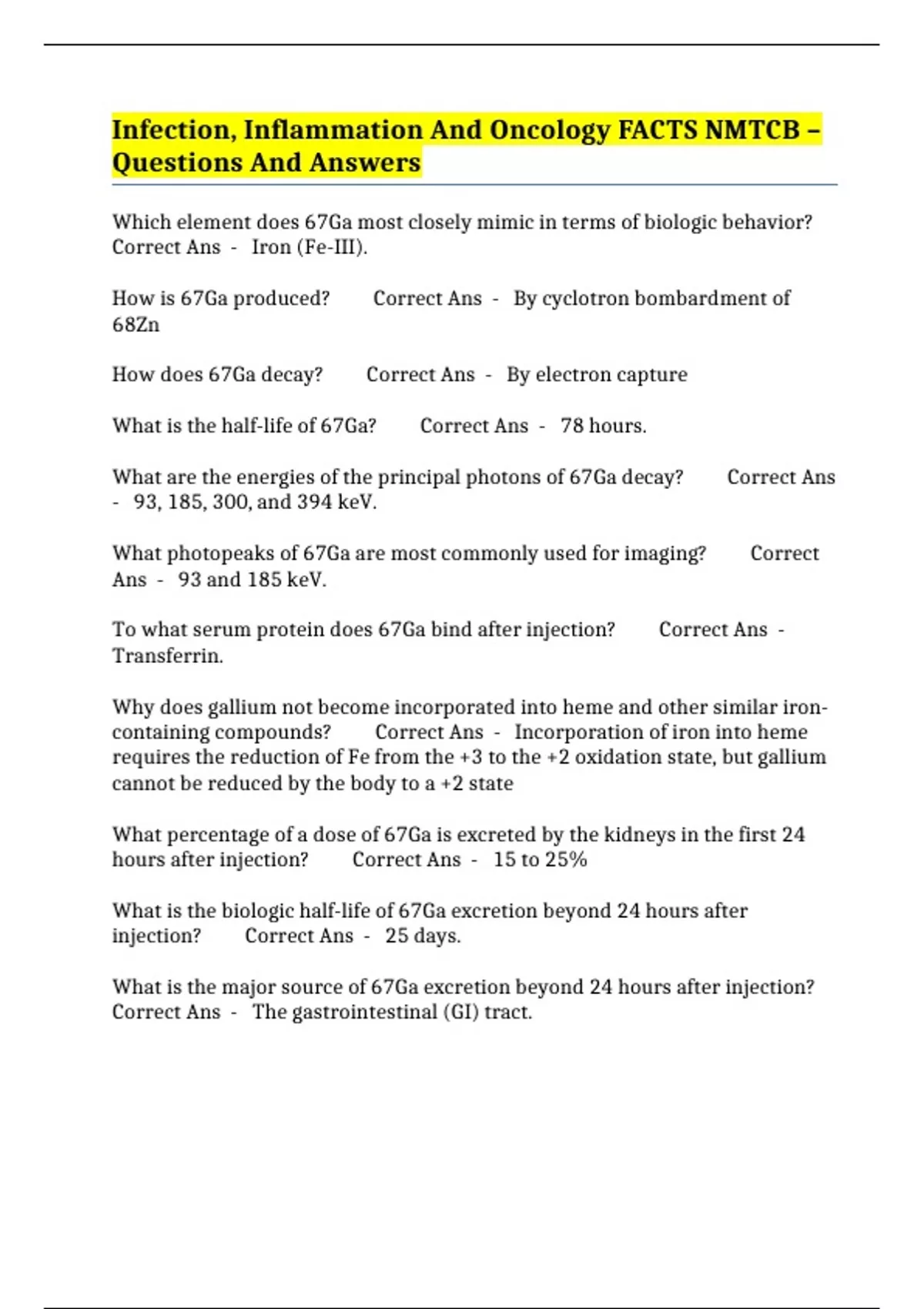 Infection, Inflammation And Oncology FACTS NMTCB – Questions And Answers