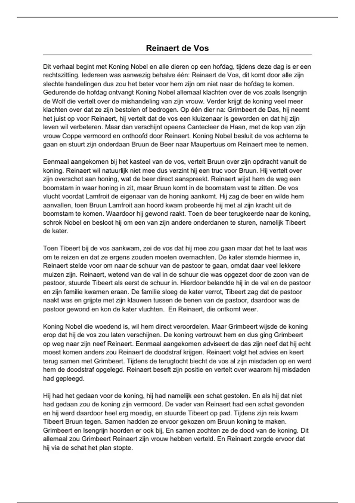 hem de doodstraf opgelegd. Reinaert beseft zijn positie en vertelt over waarom hij misdaden