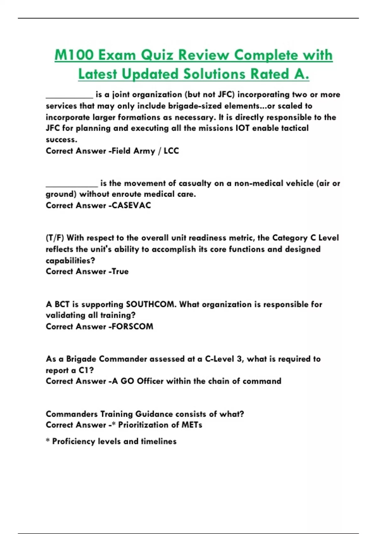 M100 Exam Quiz Review Complete with Latest Updated Solutions Rated A.
