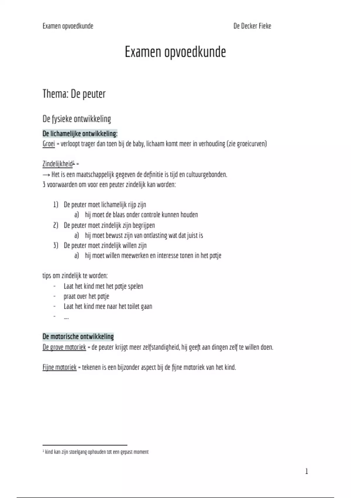 Examen opvoedkunde De Decker Fieke