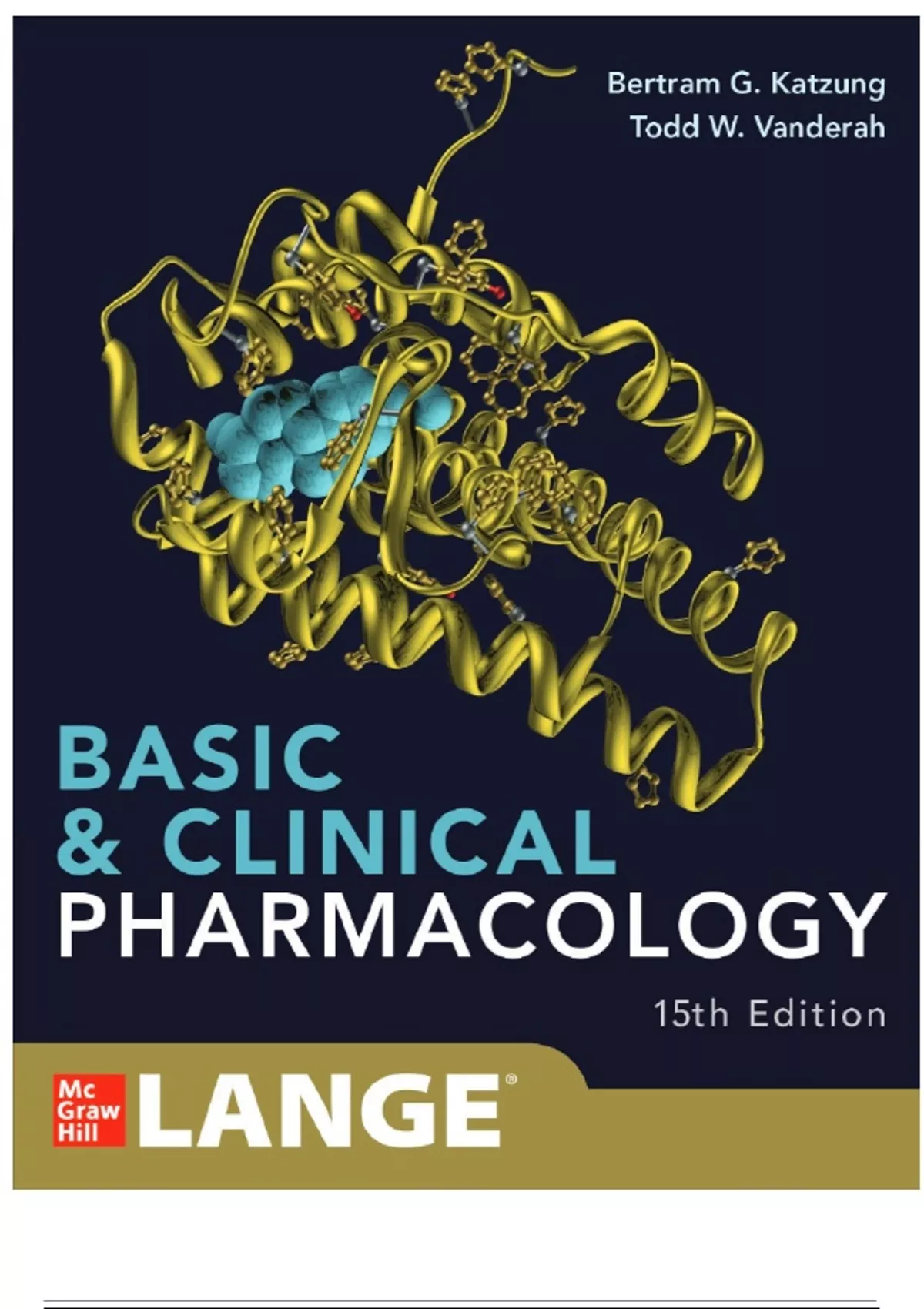 Test Bank for Basic and Clinical Pharmacology 15th Edition By Bertram G. Katzung Chapter 1-66 Complete Guide A+. 1. Introduction: The Nature of Drugs & Drug Development & Regulation 2. Drug Receptors & Pharmacodynamics 3. Pharmacokinetics & Pharmacodynamics: Rational Dosing & the Time Course of Drug Action 4. Drug Biotransformation 5. Pharmacogenomics 6. Introduction to Autonomic Pharmacology 7. Cholinoceptor-Activating & Cholinesterase-Inhibiting Drugs 8. Cholinoceptor-Blocking Drugs 9. Adrenoceptor Agonists & Sympathomimetic Drugs 10. Adrenoceptor Antagonist Drugs 11. Antihypertensive Agents 12. Vasodilators & the Treatment of Angina Pectoris 13. Drugs Used in Heart Failure 14. Agents Used in Cardiac Arrhythmias 15. Diuretic Agents 16. Histamine, Serotonin, & the Ergot Alkaloids 17. Vasoactive Peptides 18. The Eicosanoids: Prostaglandins, Thromboxanes, Leukotrienes, & Related Compounds 19. Nitric Oxide 20. Drugs Used in Asthma 21. Introduction to the Pharmacology of CNS Drugs 22. Sedative-Hypnotic Drugs 23. The Alcohols 24. Antiseizure Drugs 25. General Anesthetics 26. Local Anesthetics 27. Skeletal Muscle Relaxants 28. Pharmacologic Management of Parkinsonism & Other Movement Disorders 29. Antipsychotic Agents & Lithium 30. Antidepressant Agents 31. Opioid Agonists & Antagonists 32. Drugs of Abuse 33. Agents Used in Cytopenias; Hematopoietic Growth Factors 34. Drugs Used in Disorders of Coagulation 35. Agents Used in Dyslipidemia 36. Nonsteroidal Anti-Inflammatory Drugs, Disease-Modifying Antirheumatic Drugs, Nonopioid Analgesics, & Drugs Used in Gout 37. Hypothalamic & Pituitary Hormones 38. Thyroid & Antithyroid Drugs 39. Adrenocorticosteroids & Adrenocortical Antagonists 40. The Gonadal Hormones & Inhibitors 41. Pancreatic Hormones & Antidiabetic Drugs 42. Agents That Affect Bone Mineral Homeostasis 43. Beta-Lactam & Other Cell Wall- & Membrane-Active Antibiotics 44. Tetracyclines, Macrolides, Clindamycin, Chloramphenicol, Streptogramins, & Oxazolidinones 45. Aminoglycosides & Spectinomycin 46. Sulfonamides, Trimethoprim, & Quinolones 47. Antimycobacterial Drugs 48. Antifungal Agents 49. Antiviral Agents 50. Miscellaneous Antimicrobial Agents; Disinfectants, Antiseptics, & Sterilants 51. Clinical Use of Antimicrobial Agents 52. Antiprotozoal Drugs 53. Clinical Pharmacology of the Antihelminthic Drugs 54. Cancer Chemotherapy 55. Immunopharmacology 56. Introduction to Toxicology: Occupational & Environmental 57. Heavy Metal Intoxication & Chelators 58. Management of the Poisoned Patient 59. Special Aspects of Perinatal & Pediatric Pharmacology 60. Special Aspects of Geriatric Pharmacology 61. Dermatologic Pharmacology 62. Drugs Used in the Treatment of Gastrointestinal Diseases 63. Therapeutic & Toxic Potential of Over-the-Counter Agents 64. Dietary Supplements & Herbal Medications 65. Rational Prescribing & Prescription Writing 66. Important Drug Interactions & Their Mechanisms