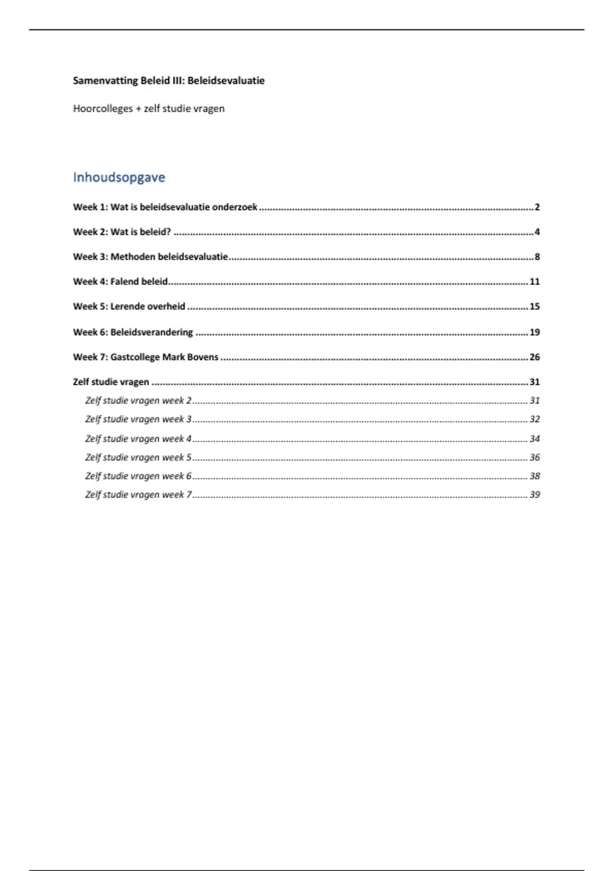 Week 3: Methoden beleidsevaluatie ............................................................................................................... 8