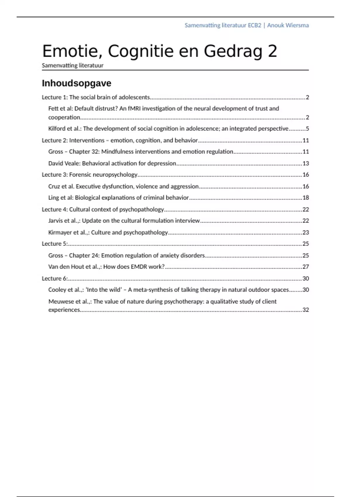, Samenvatting literatuur ECB2 | Anouk Wiersma