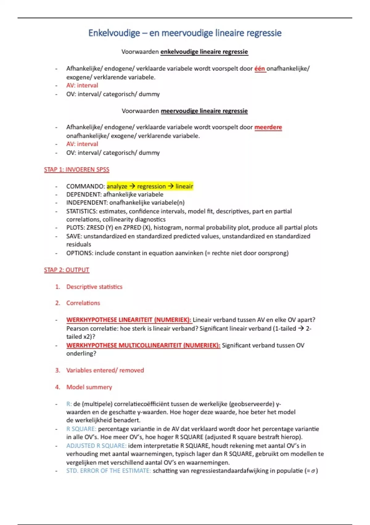 - COMMANDO: analyze regression lineair