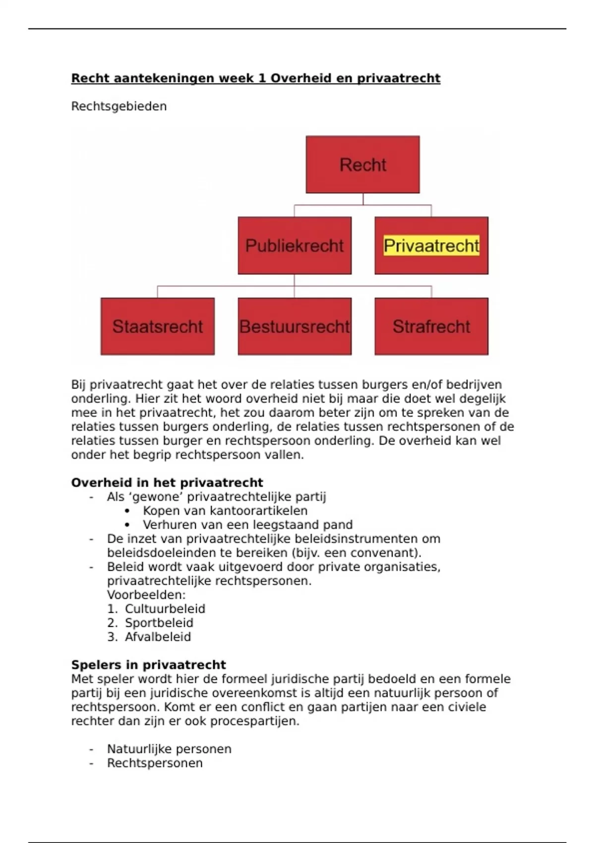 Bij privaatrecht gaat het over de relaties tussen burgers en/of bedrijven