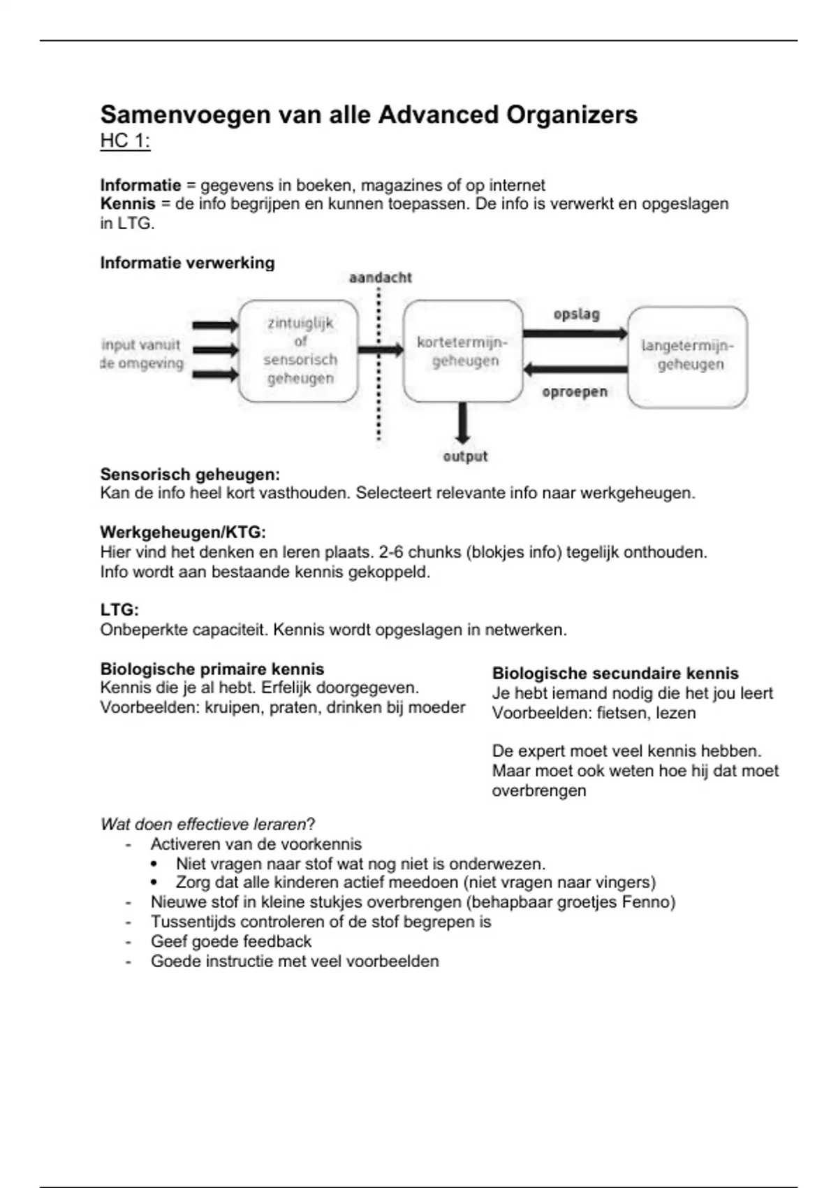 - Nieuwe stof in kleine stukjes overbrengen (behapbaar groetjes Fenno)