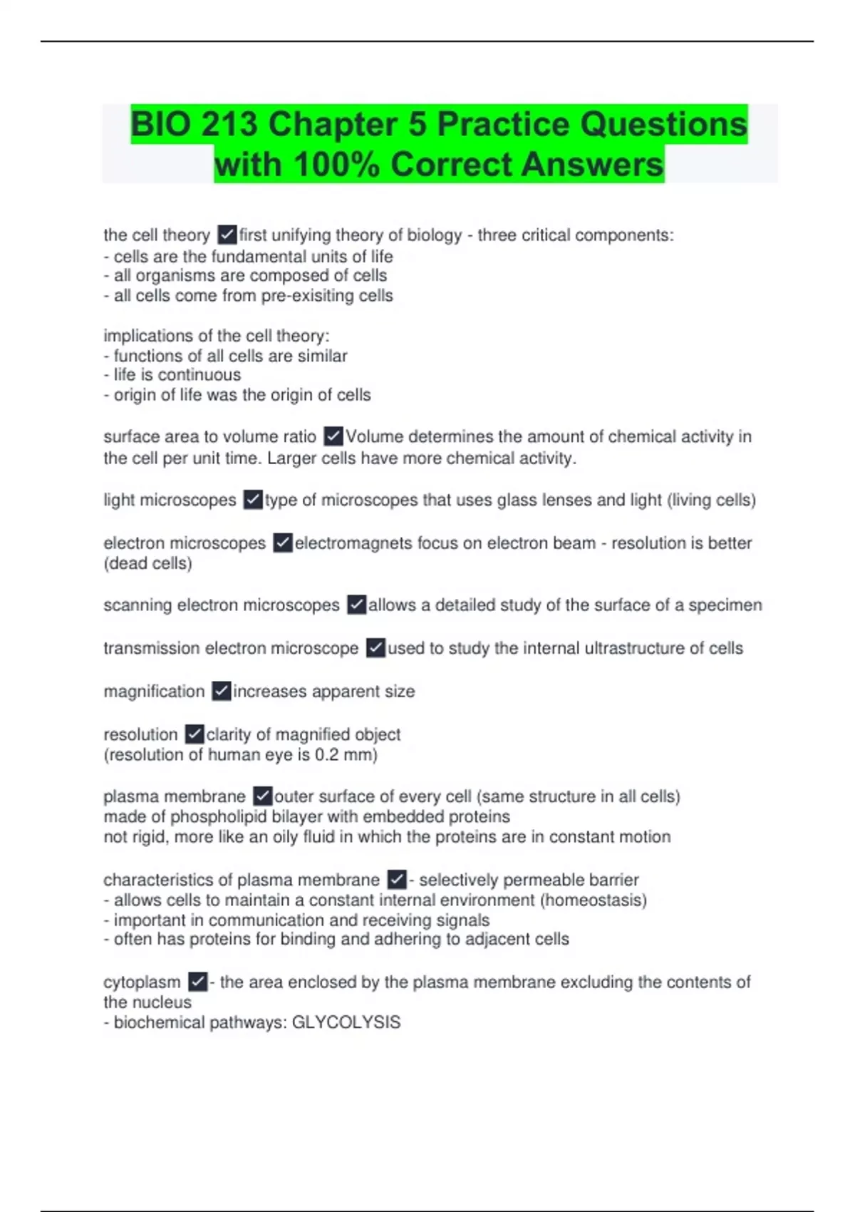 BIO 213 Chapter 5 Practice Questions with 100% Correct Answers