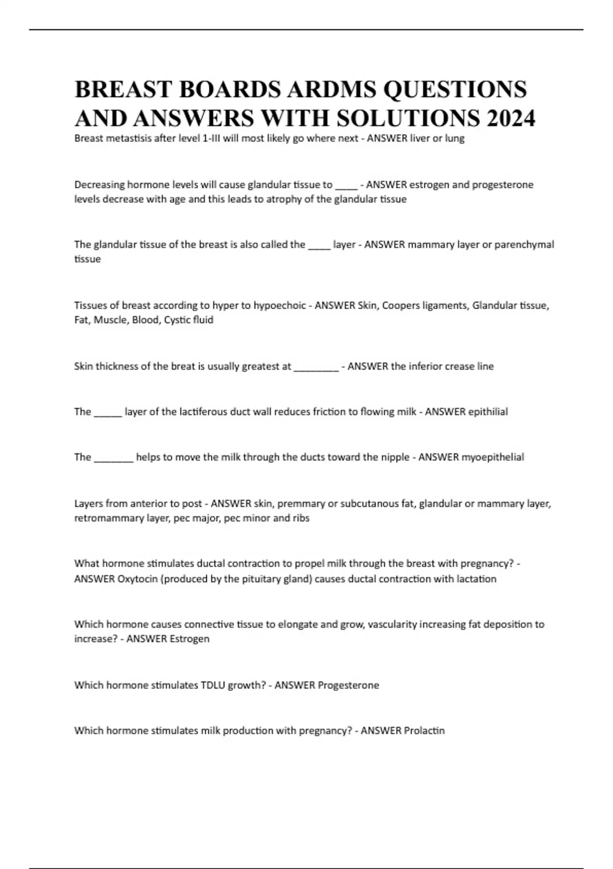 BREAST BOARDS ARDMS QUESTIONS AND ANSWERS WITH SOLUTIONS 2024