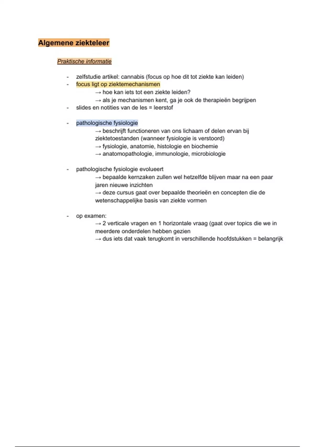 - pathologische fysiologie evolueert