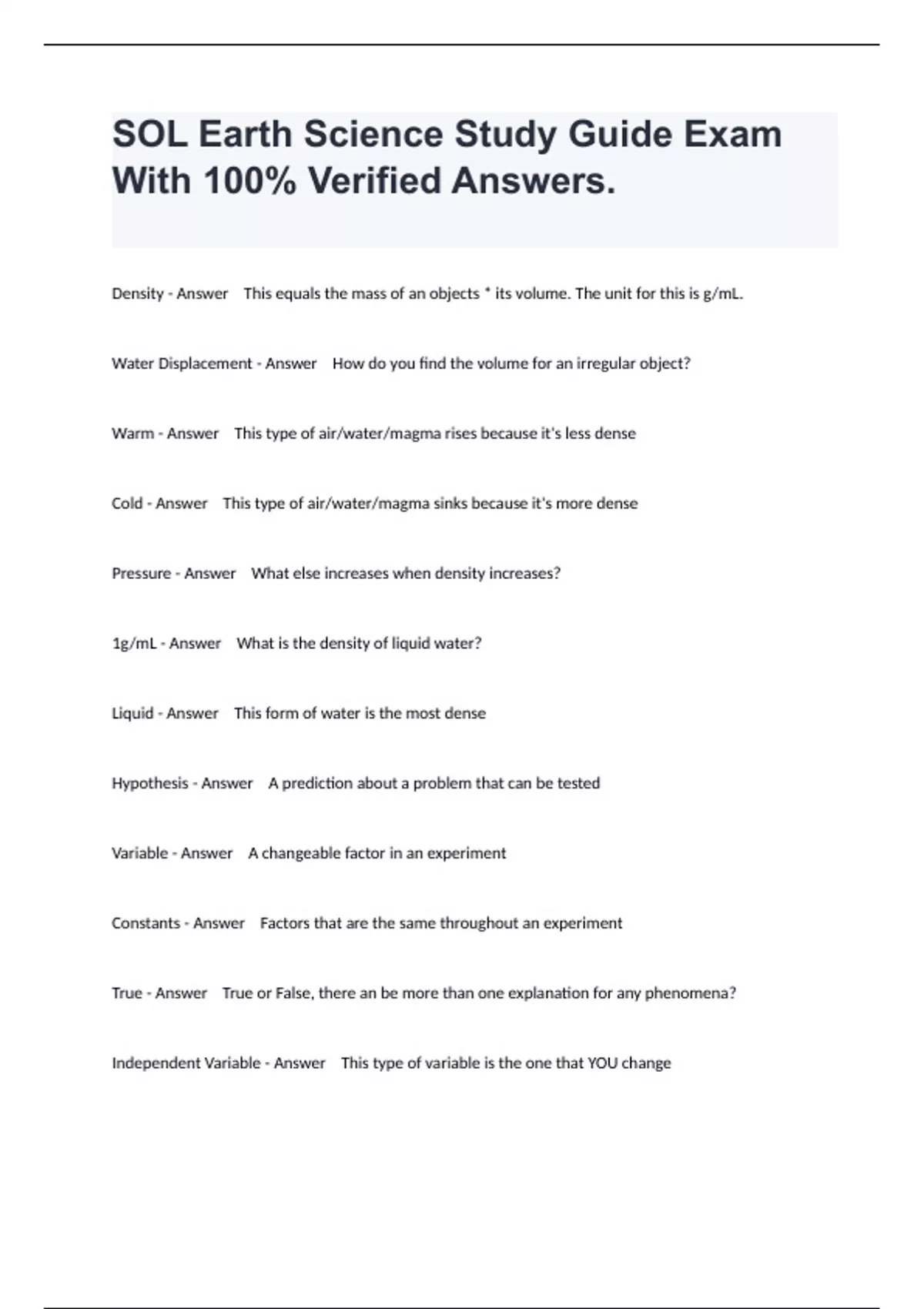 SOL Earth Science Study Guide Exam With 100% Verified Answers.