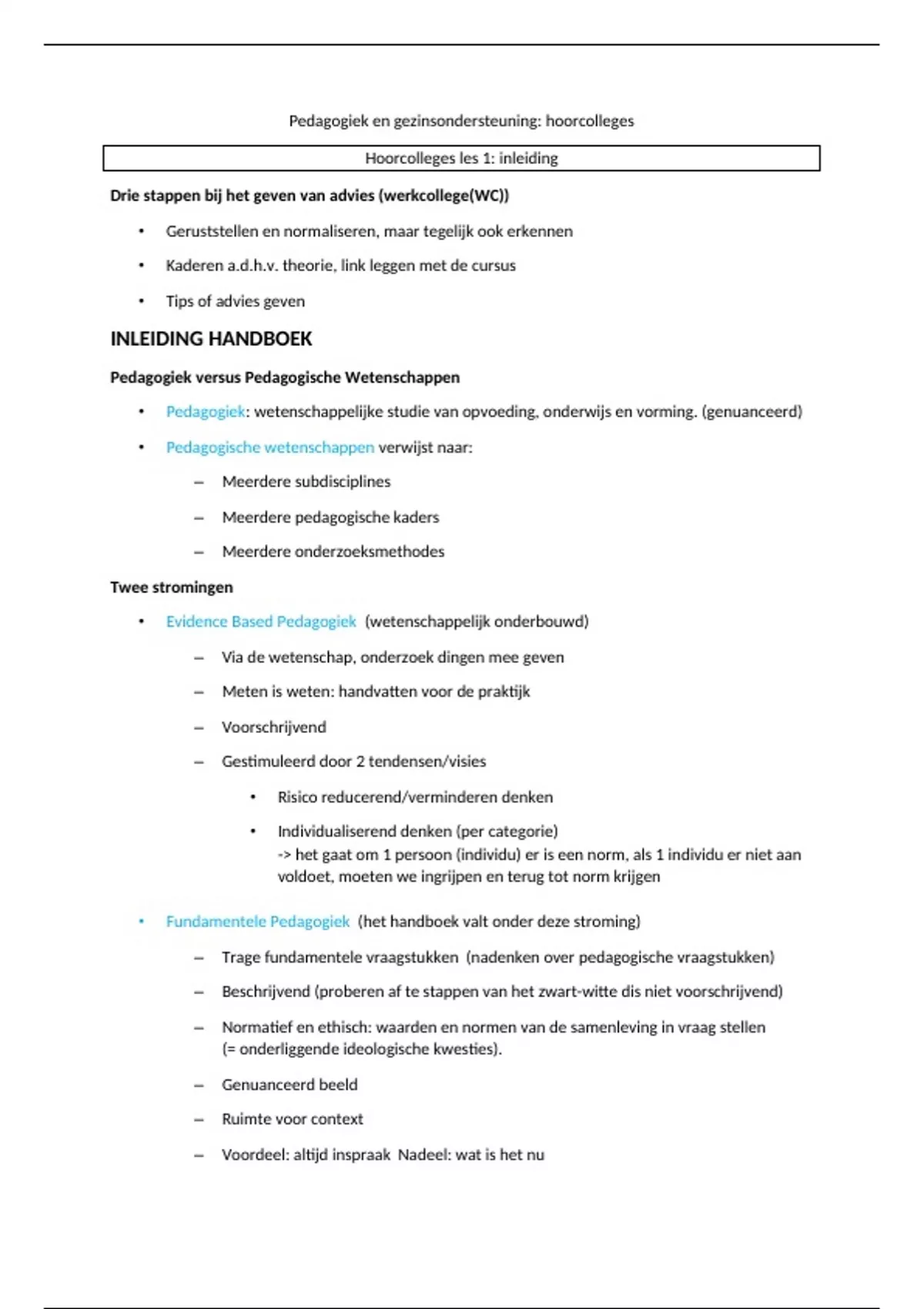 Pedagogiek en gezinsondersteuning: hoorcolleges