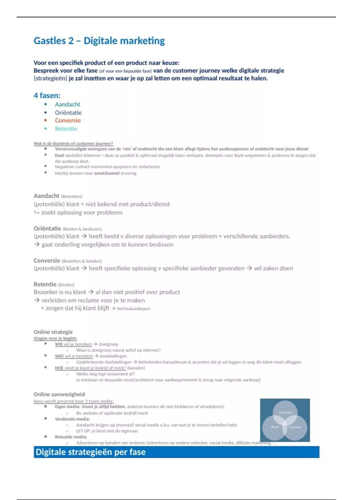 Bespreek voor elke fase (of voor een bepaalde fase) van de customer journey welke digitale strategie