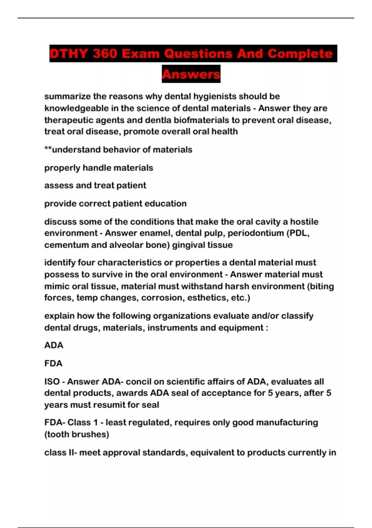 DTHY 360 Exam Questions And Complete Answers...