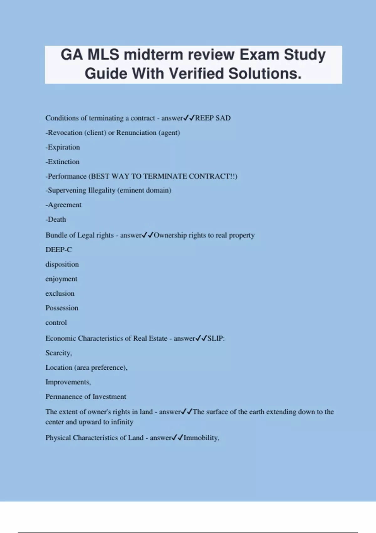 GA MLS midterm review Exam Study Guide With Verified Solutions.