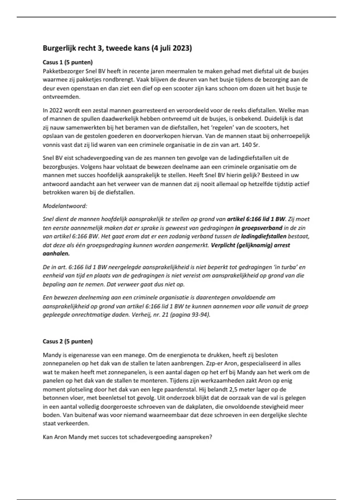 Tentamen Burgerlijk Recht 3 tweede kans 4 juli 2023 vragen en officiële antwoorden
