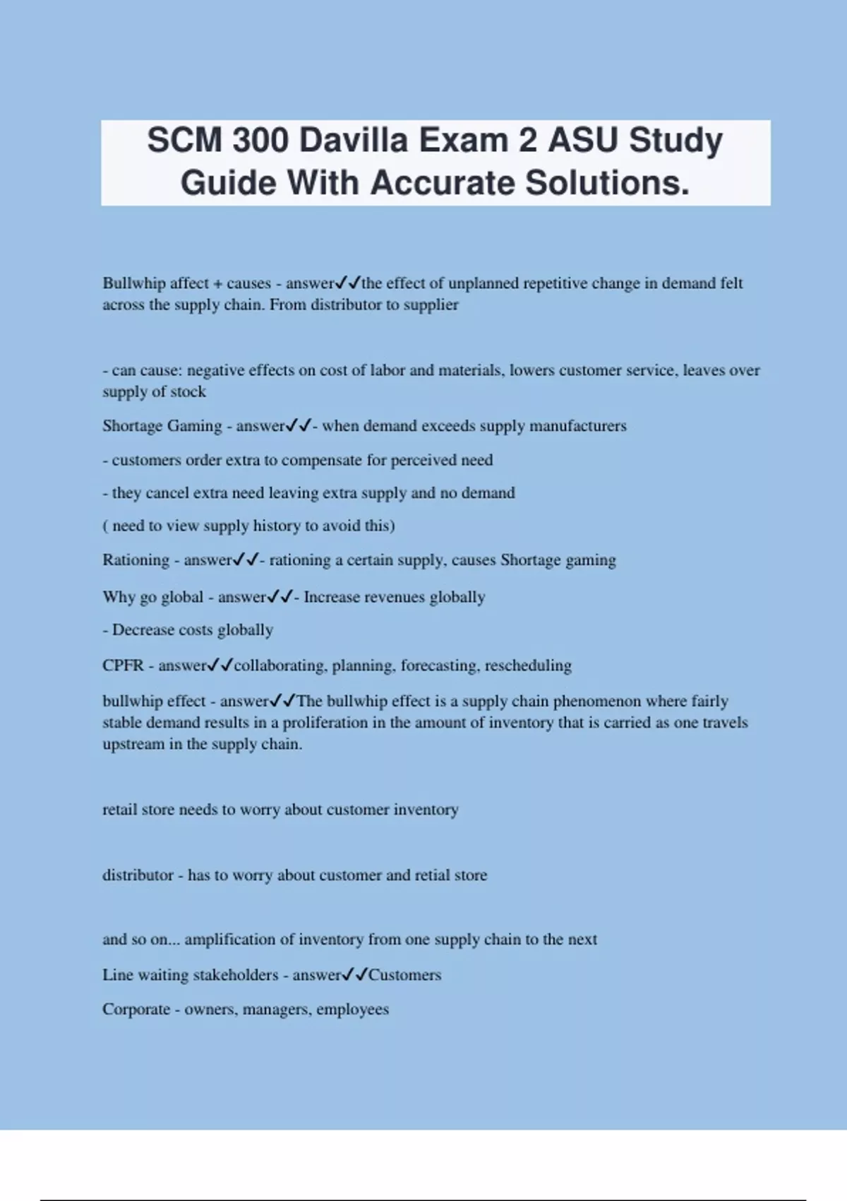 SCM 300 Davilla Exam 2 ASU Study Guide With Accurate Solutions.