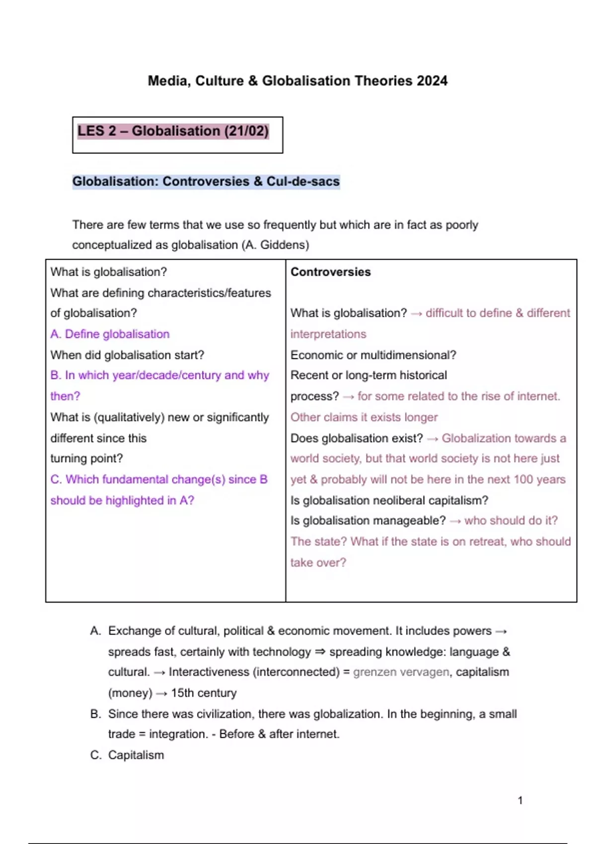 should be highlighted in A? Is globalisation neoliberal capitalism?