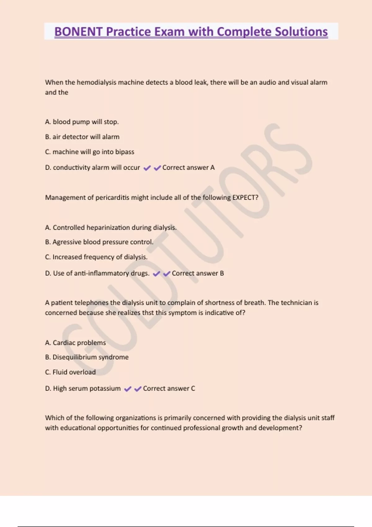 BONENT Practice Exam with Complete Solutions