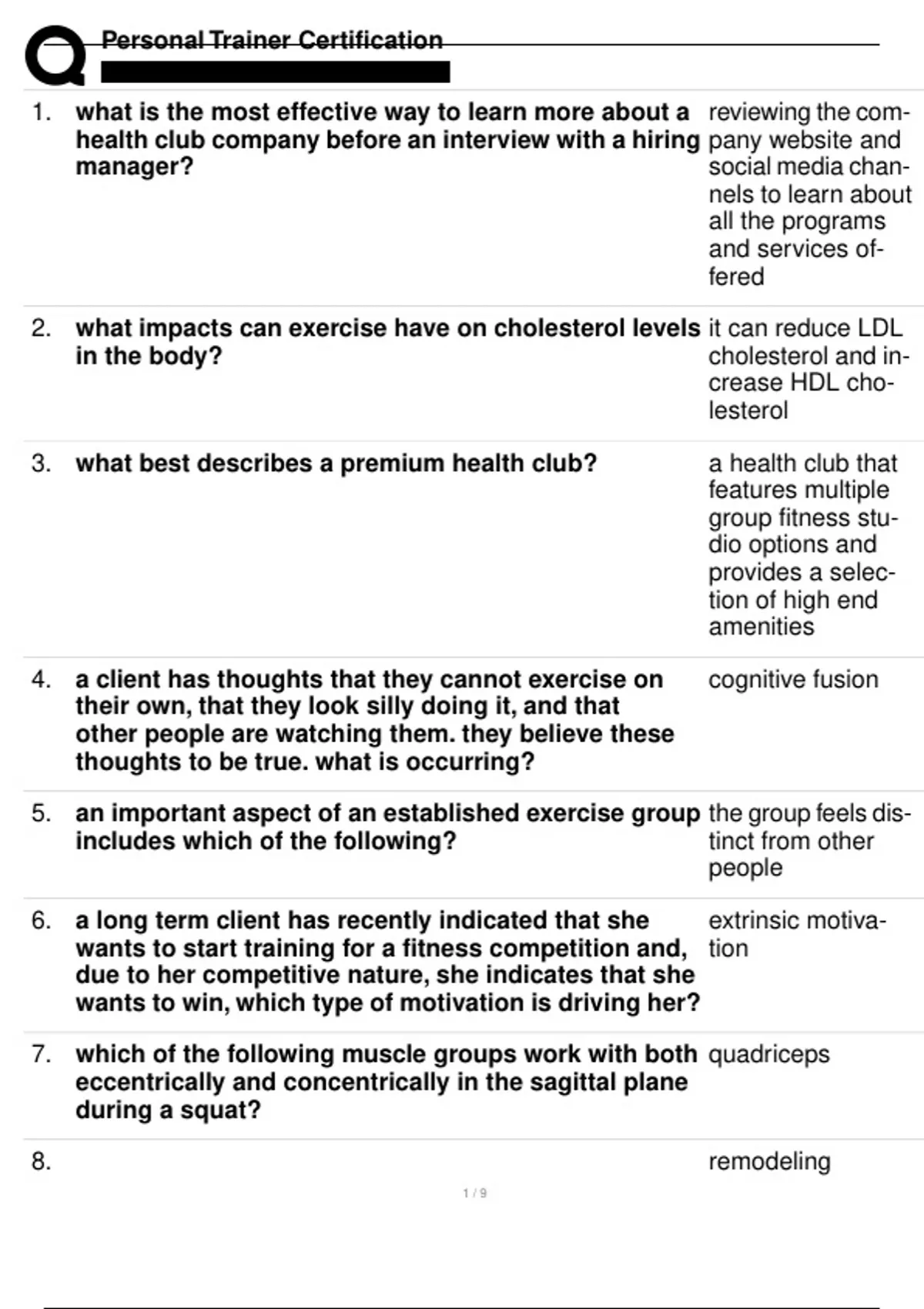 PERSONAL TRAINER CERTIFICATION THEORY AND PRACTICAL EXAM WITH ANSWERS