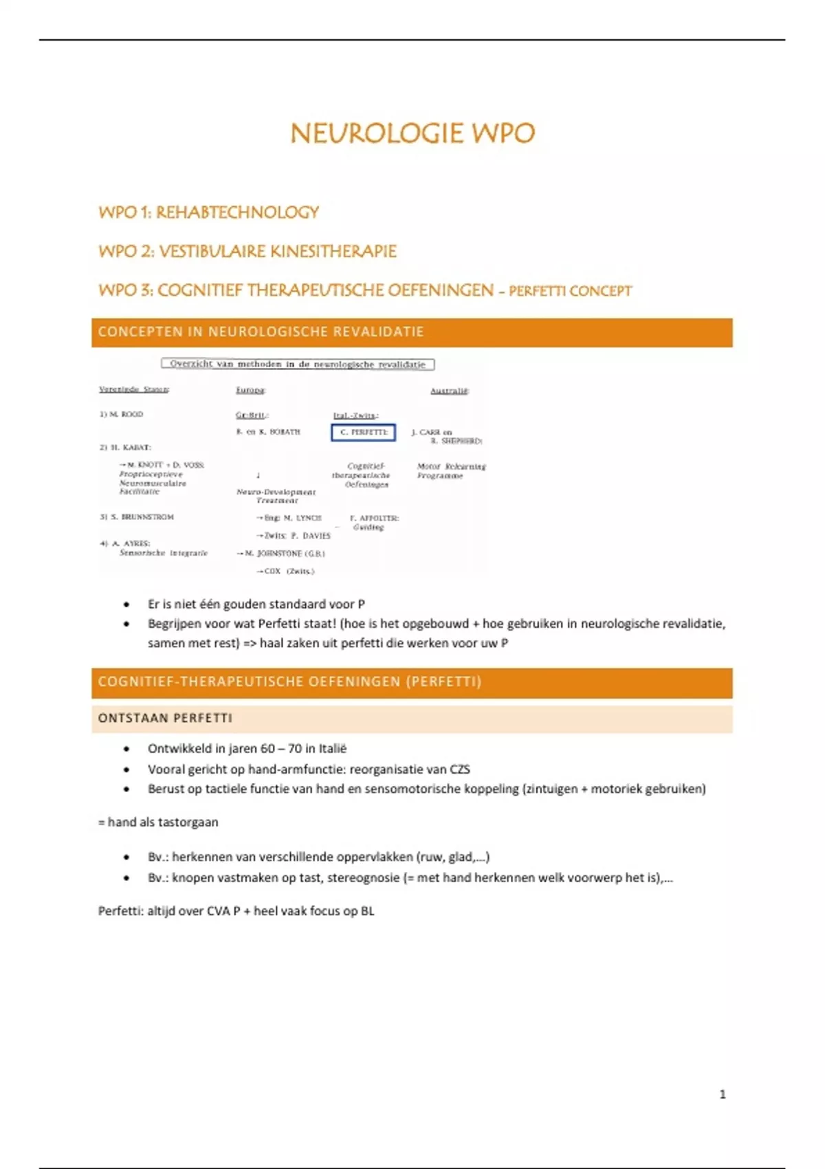 • Begrijpen voor wat Perfetti staat! (hoe is het opgebouwd + hoe gebruiken in neurologische revalidatie,