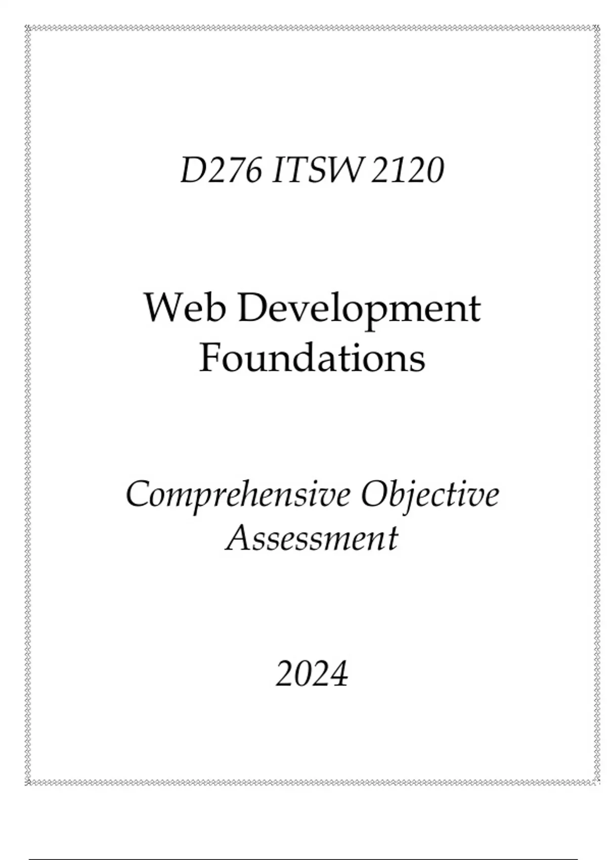 (WGU D276) ITSW 2120 Web Development Foundations Comprehensive OA 2024.(WGU D276) ITSW 2120 Web Development Foundations Comprehensive OA 2024.(WGU D276) ITSW 2120 Web Development Foundations Comprehensive OA 2024.(WGU D276) ITSW 2120 Web Development Foundations Comprehensive OA 2024.