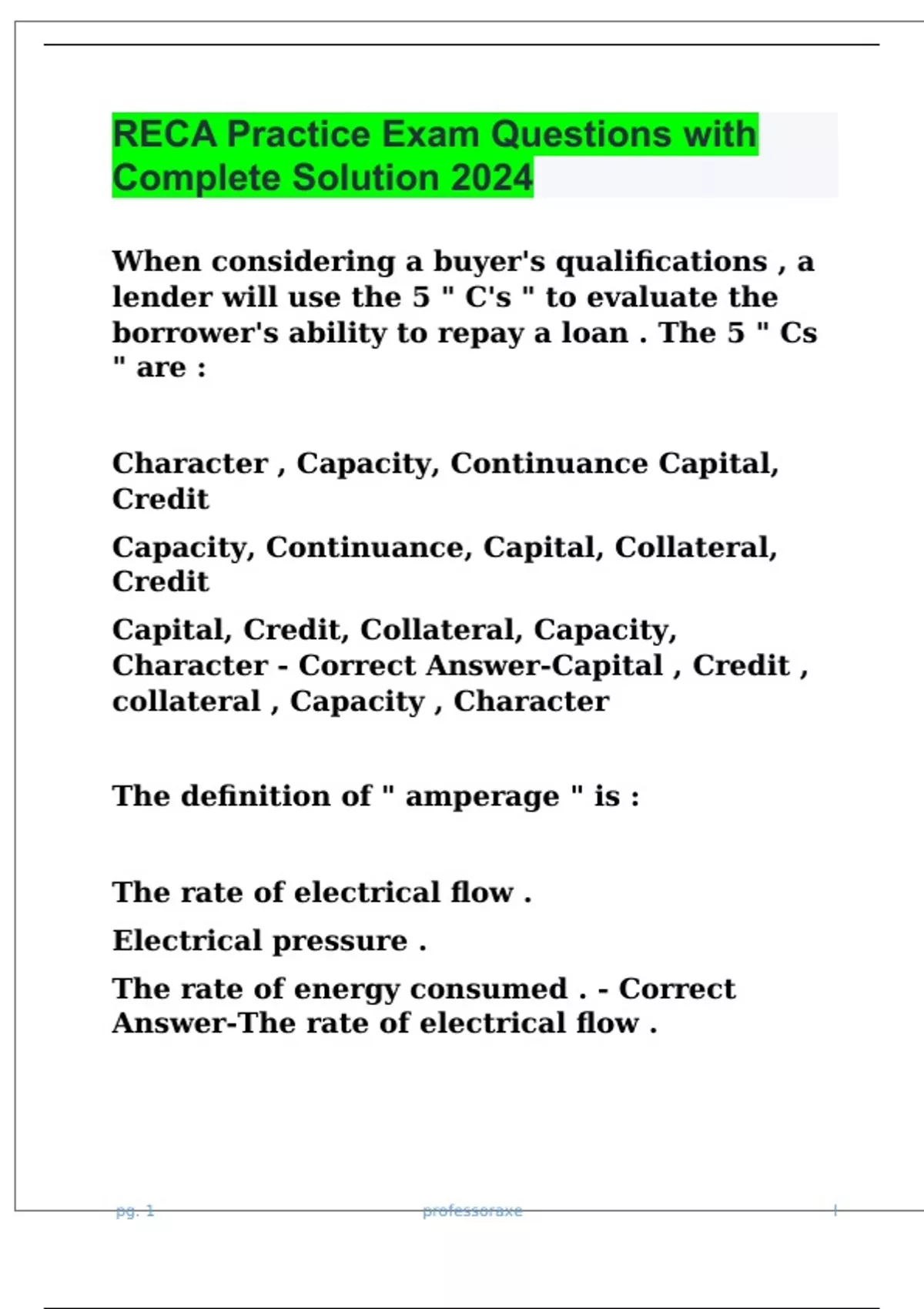 RECA Practice Exam Questions with Complete Solution 2024