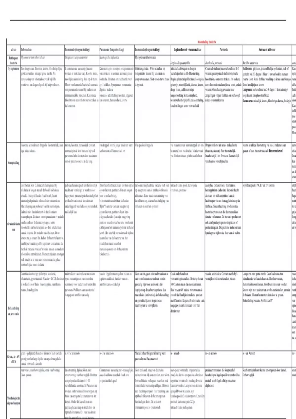 Pathogeen Mycobacterium tuberculosis Streptococcus pneumoniae Haemophilus influenza Mycoplasma Pneumonia