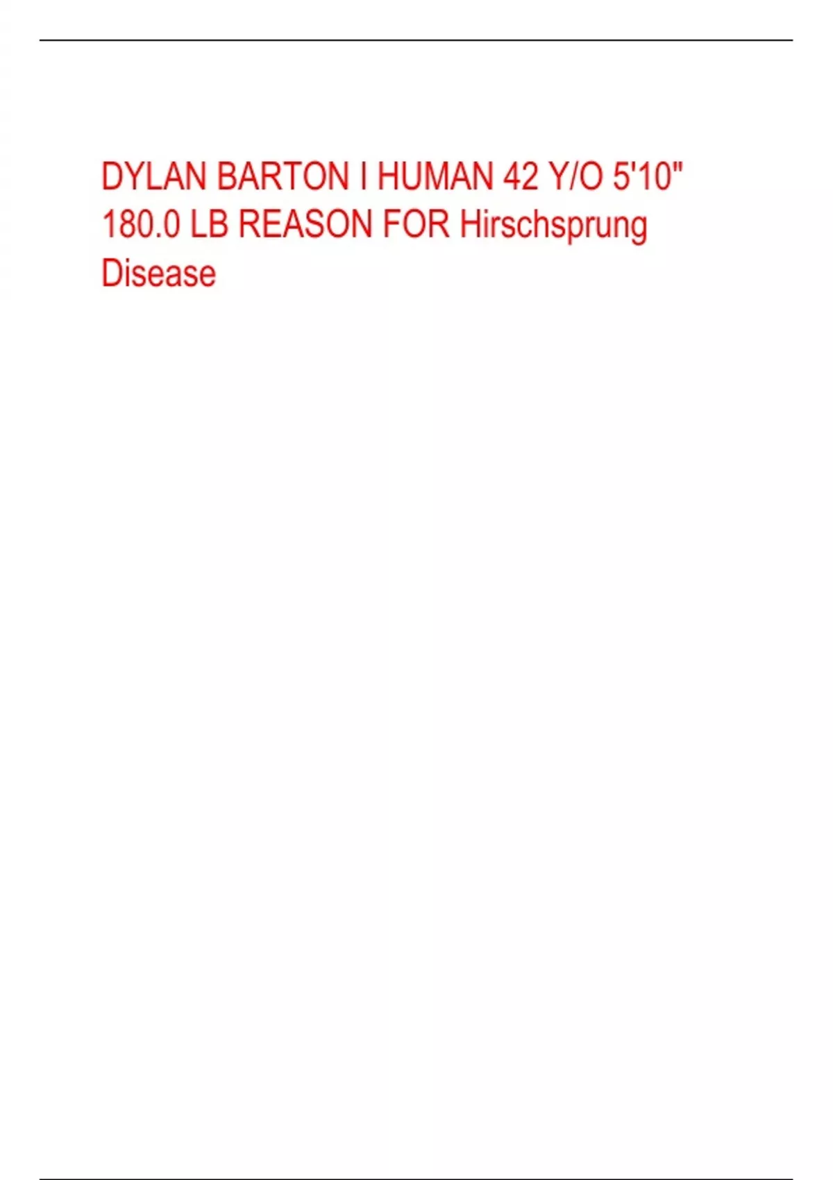 DYLAN BARTON I HUMAN 42 Y/O 5'10" 180.0 LB REASON FOR Hirschsprung Disease
