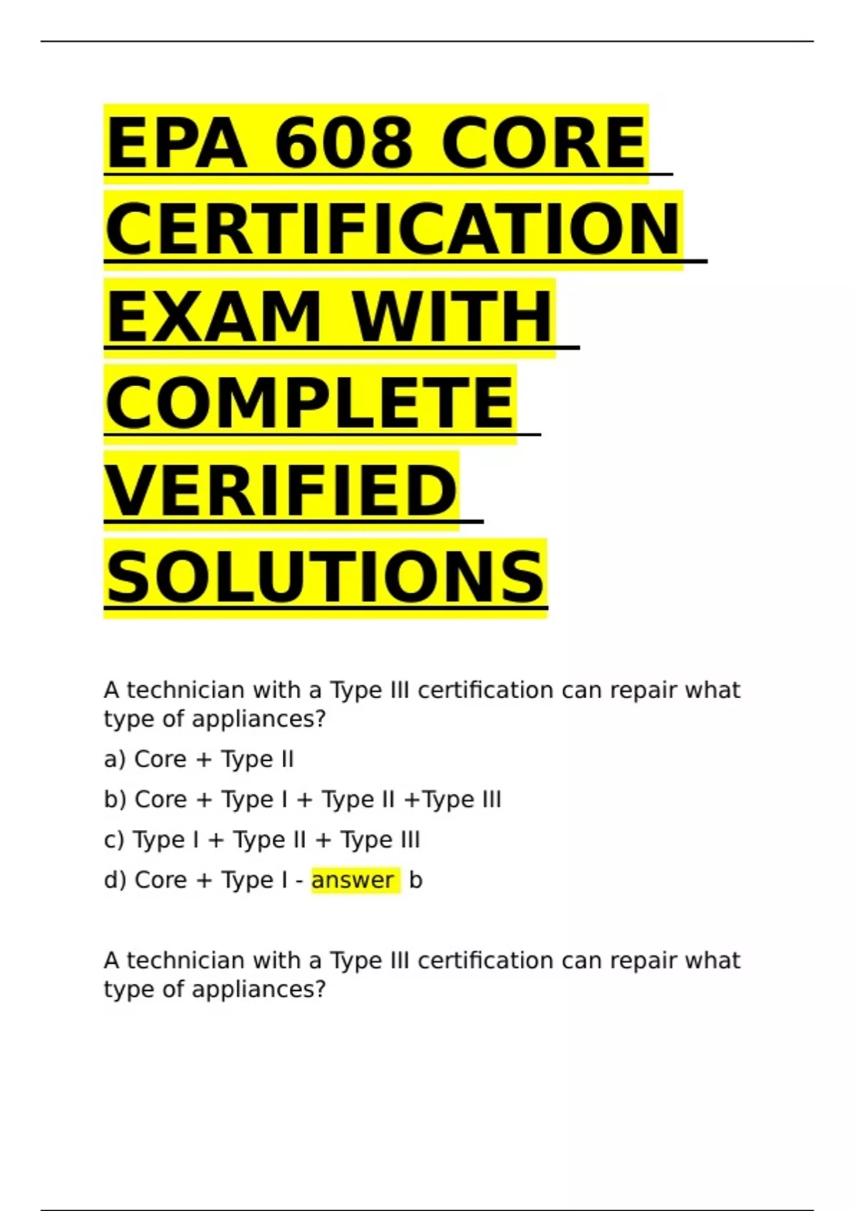 EPA 608 CORE CERTIFICATION EXAM WITH COMPLETE VERIFIED SOLUTIONS.
