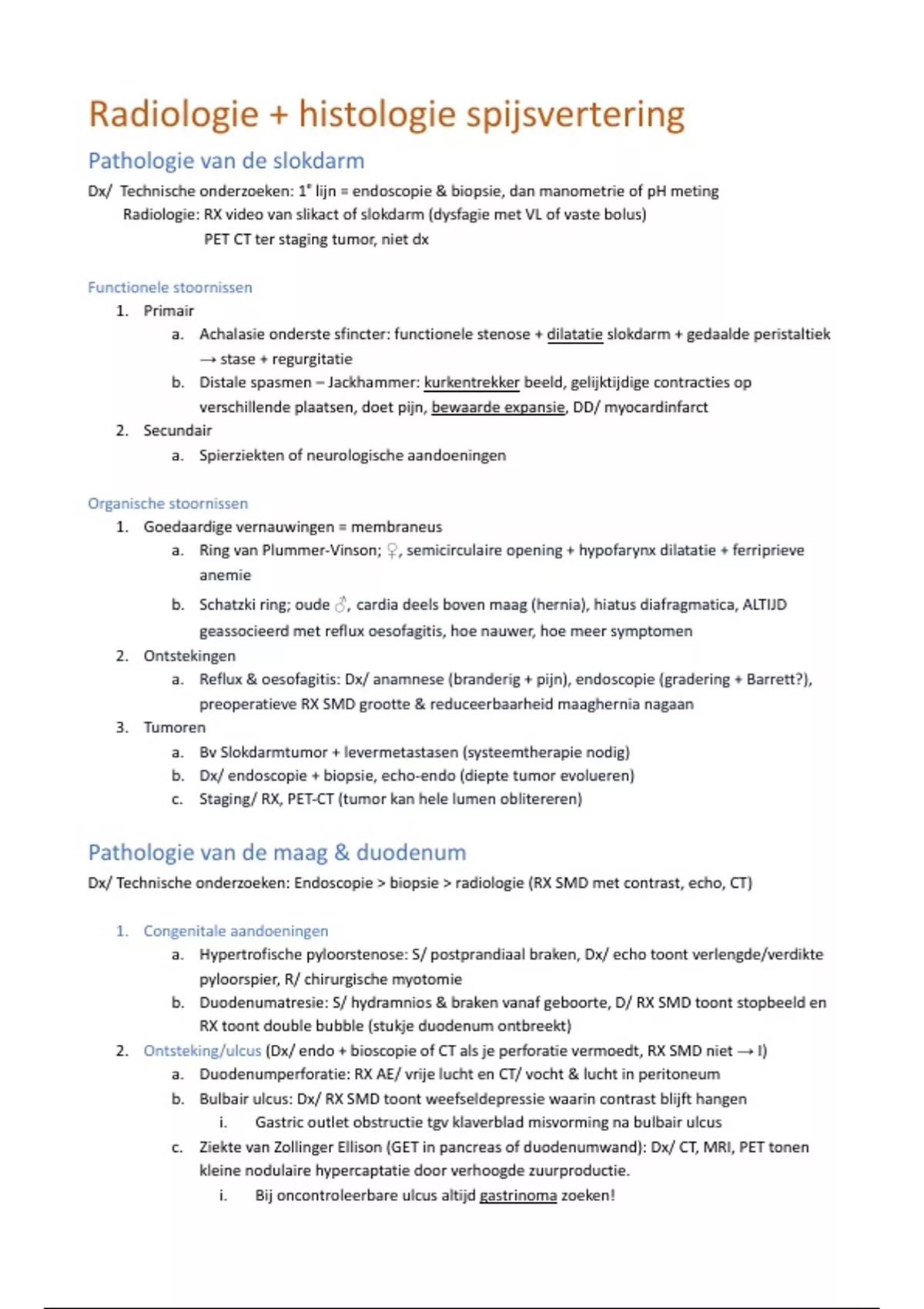 a. Achalasie onderste sfincter: functionele stenose + dilatatie slokdarm + gedaalde peristaltiek