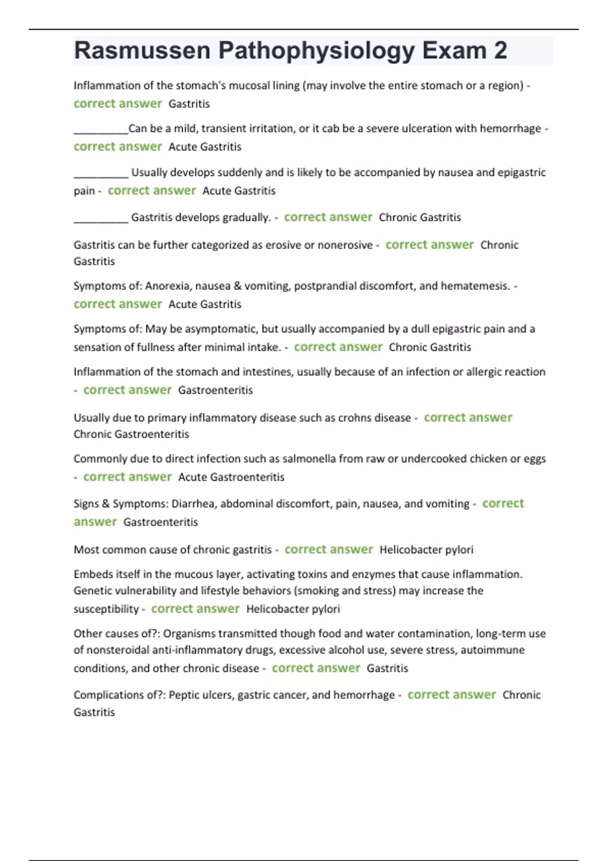 Rasmussen Pathophysiology Exam 2(300+ questions with all correct answers)/Rasmussen Pathophysiology Exam 2(300+ questions with all correct answers)/Rasmussen Pathophysiology Exam 2(300+ questions with all correct answers)