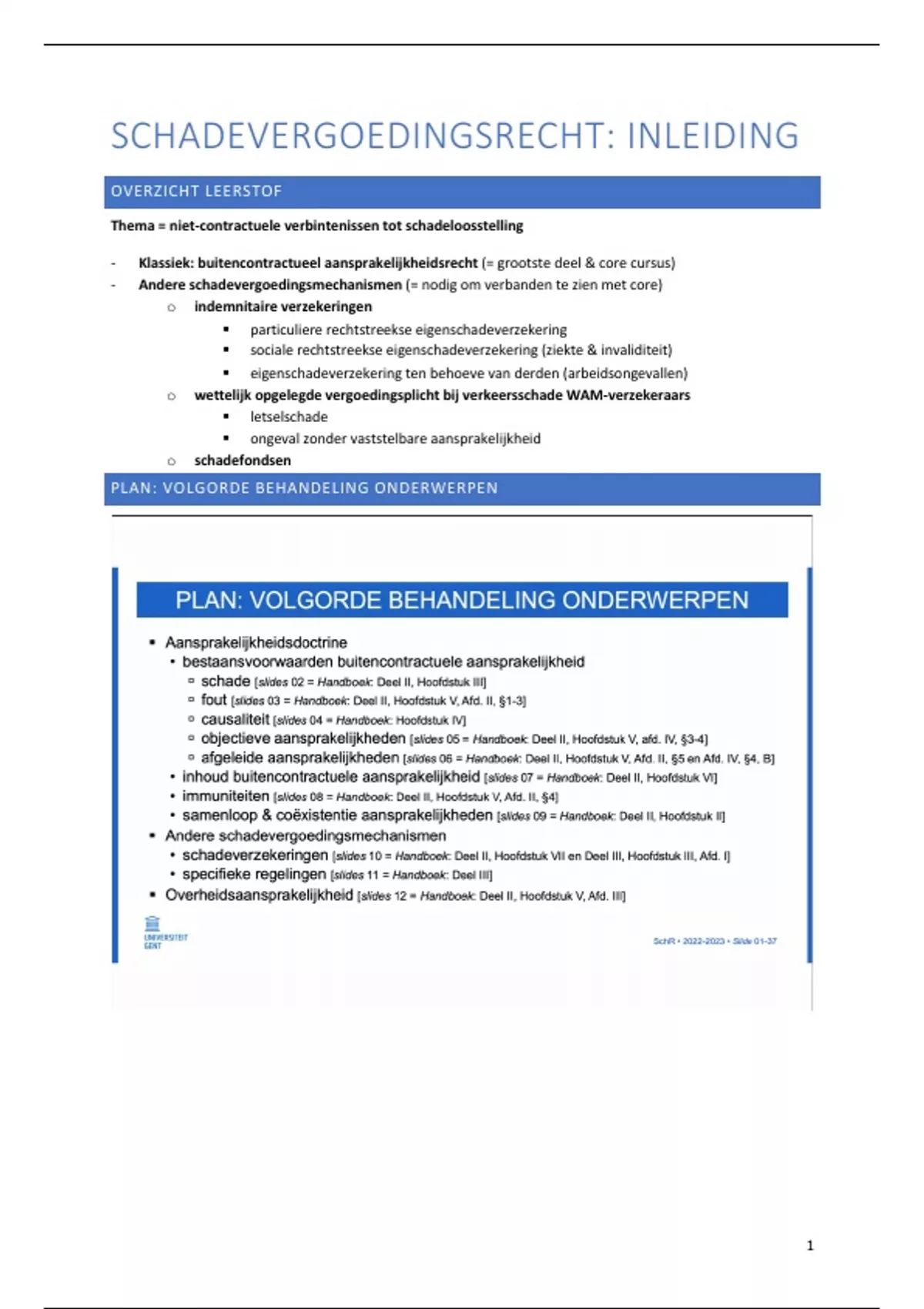- Klassiek: buitencontractueel aansprakelijkheidsrecht (= grootste deel & core cursus)