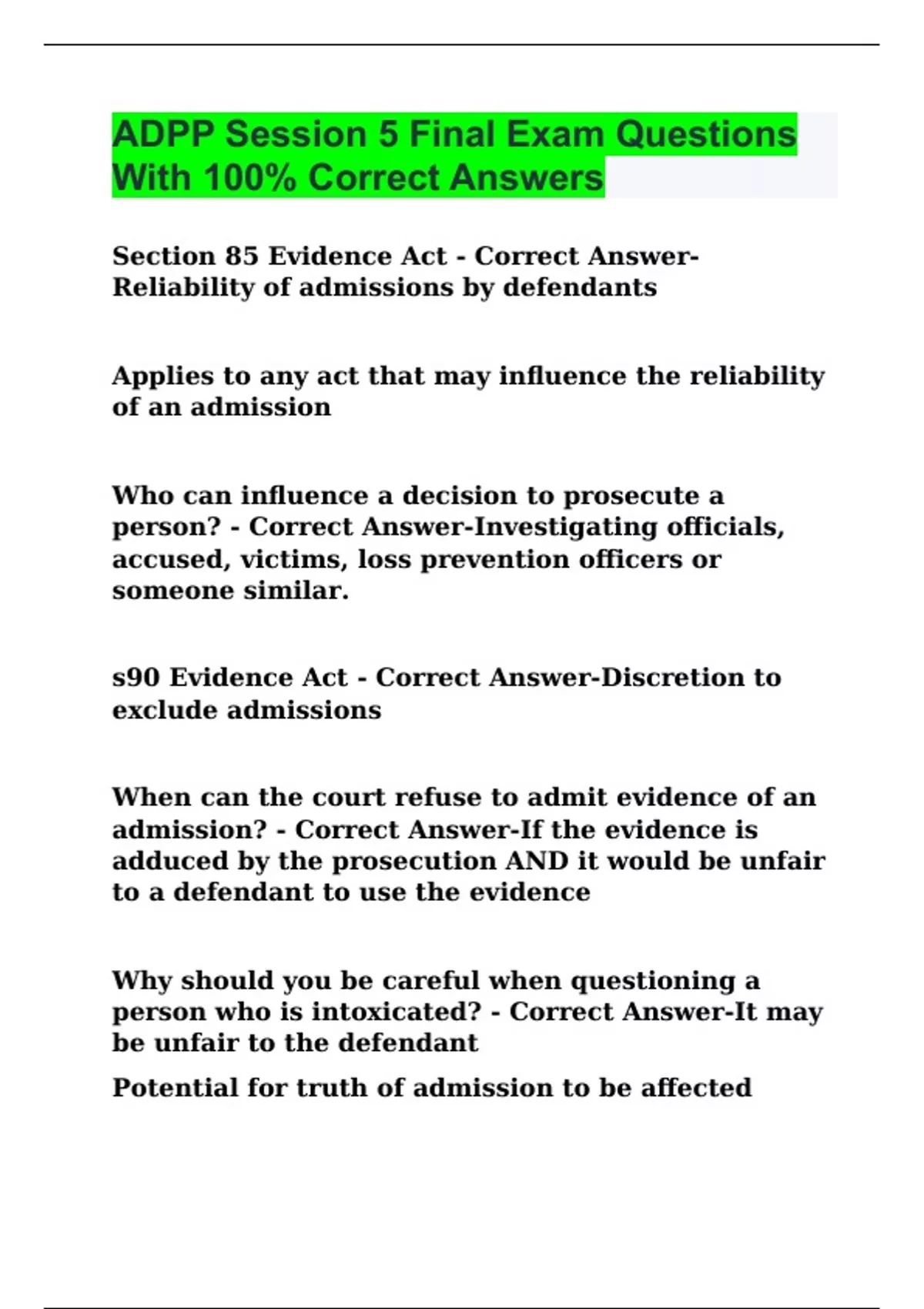 admissible? - Correct Answer-Admissible unless the